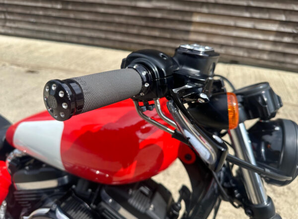 What a bike! Now reduced by £1000! If you are looking for something to stand out from the crowd then you have just found it! There is not another like this I am sure! The bike started out as a XL1200 Nightster. It has had £1000’s spent on it along with hundreds of hours in time as well. It has been built and serviced by the owner. You could not buy a Nightster and customise it for anywhere near the asking price! The extras are RSD tracker exhaust , RSD coil/ignition mount , RSD Clarity air cleaner , RSD fork brace , RSD MX handle bars , RSD Bar risers , RSD speedo/headlight relocation kit , RSD led instrument lights , RSD Tracker grips , RSD brake/clutch levers , Screamin Eagle EFI Super Tuner , Rough Crafts timing cover , Progressive fork internals , Progressive rear shocks , Burly MX foot pegs , Earls front brake line , HD 5 gallon tank , Satin black anodised front/rear alloy wheels , Black chrome spokes fr/rear , Black anodised wheel weights , Metzler Karoo 2 tyres , Heavy duty inner tubes , Stainless steel engine bolts , EFI hardware kit. Modifications done are lightened front pulley cover , rear fender , lightened sub frame , custom one off seat and base , shortened rear indicators , custom bash plate , relocated ignition and coil , complete re-wire of whole bike , Drilled front/rear discs , Custom paint by Illusion Race Paint , Two tone paint finish on engine , white painted front pulley , white painted fork leg lowers , White painted rectifier , painted rear pulley with hand painted white rim , fr/rear brake disc centres painted , painted gear and rear brake lever , powder coted side stand , powder coated wheel hubs , powder coated bolts throughout the bike , powder coated top and bottom yoke. There is possibly other stuff I have missed!
