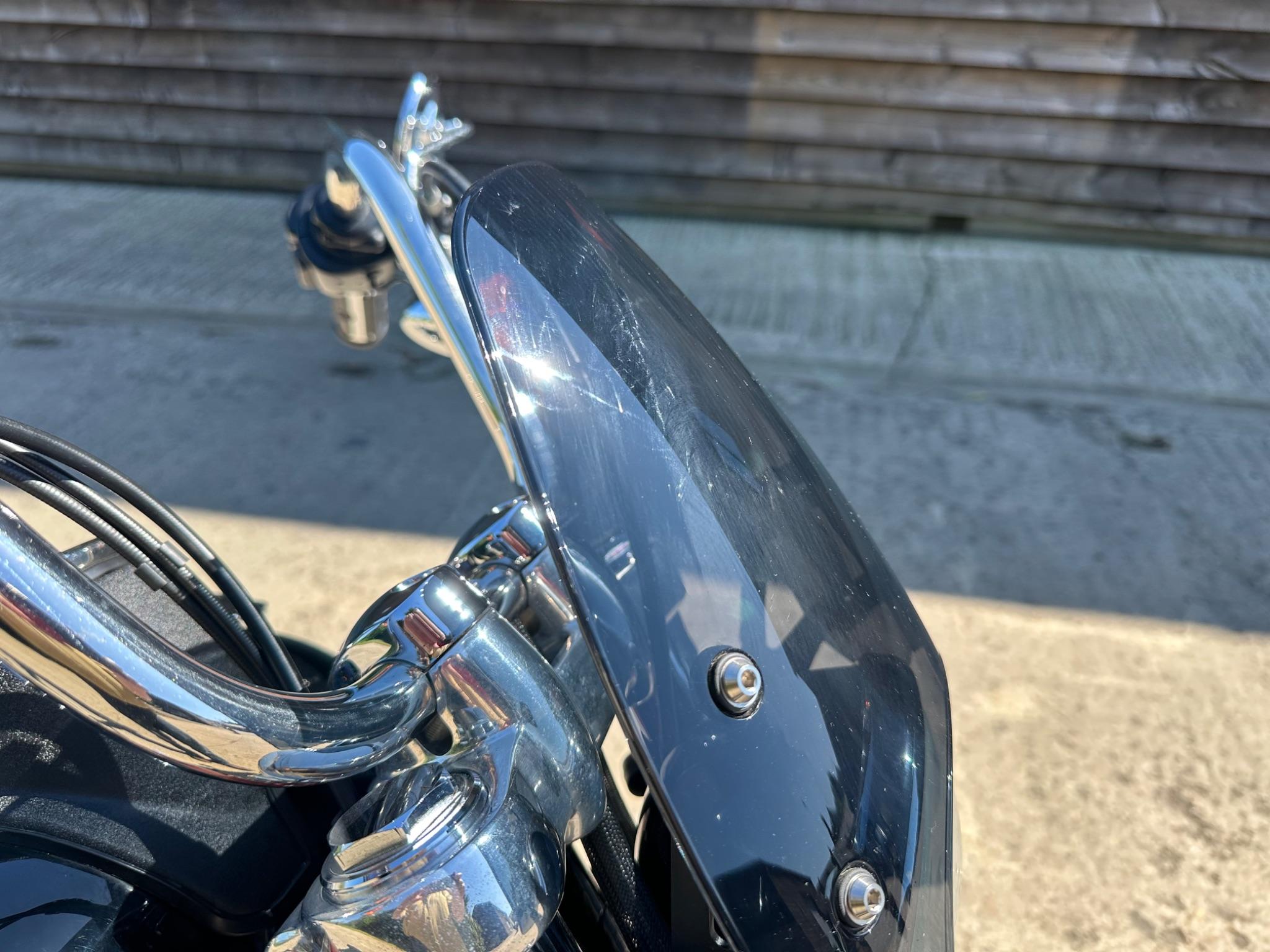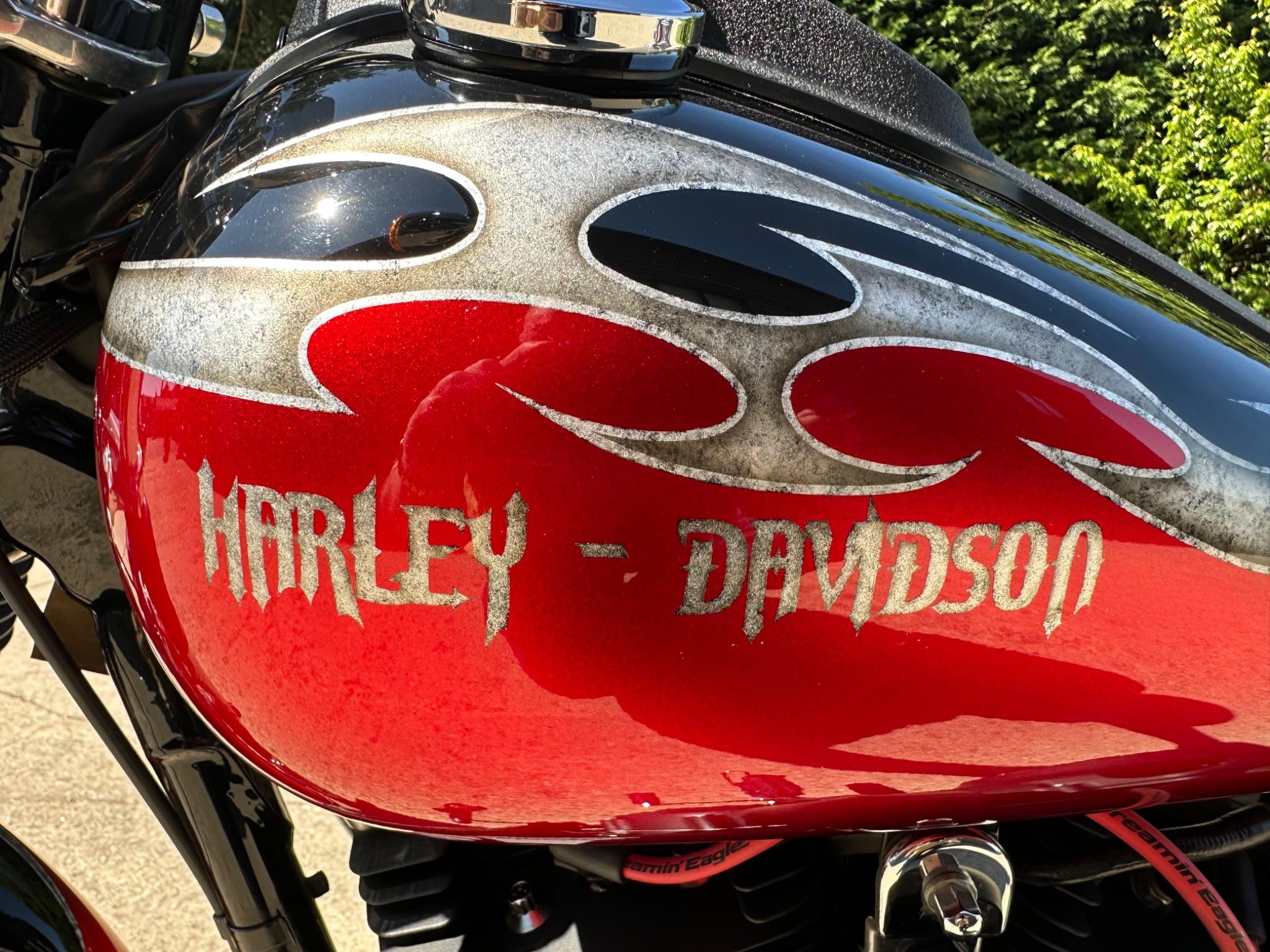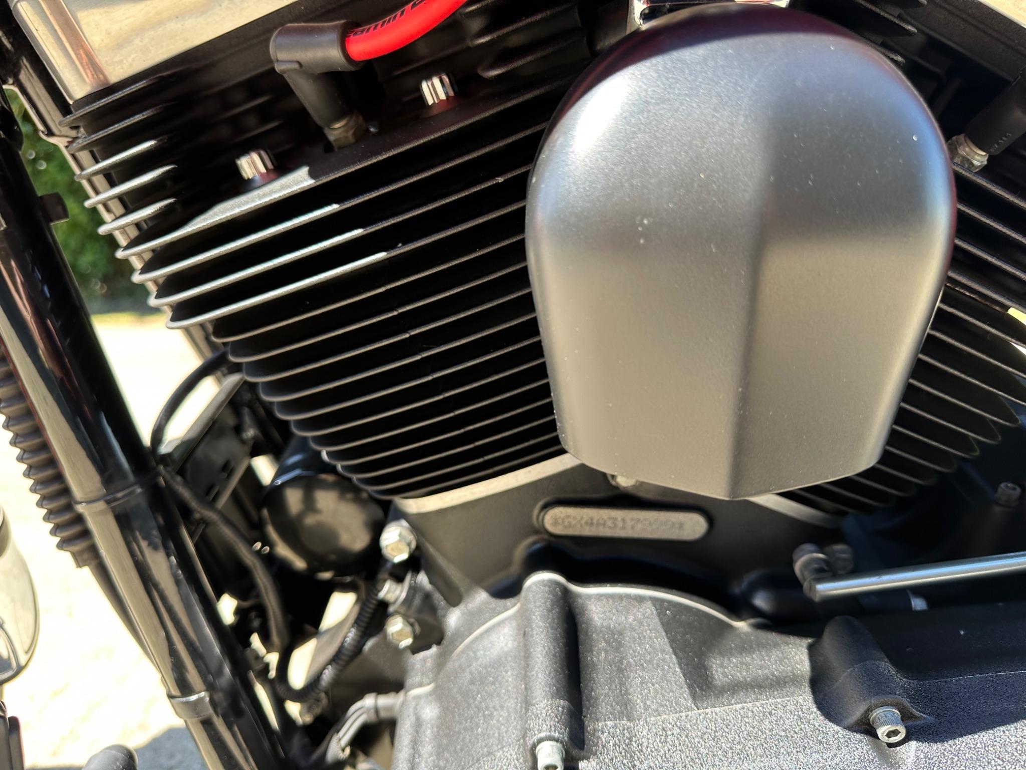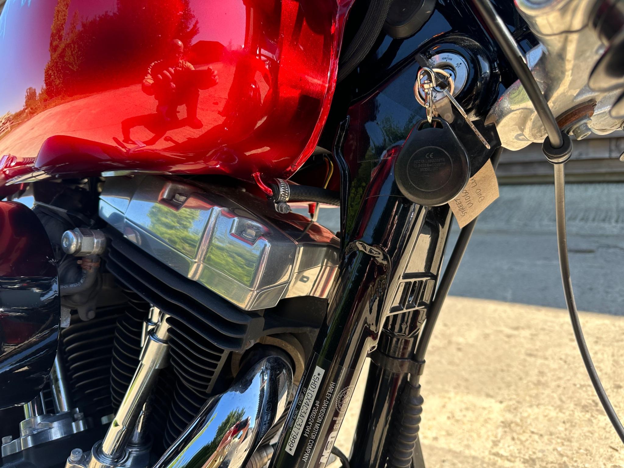 Here is a custom painted Harley Davidson Street Bob in black , red , silver. The paintwork is exquisite! The bike has its original owners/service book and two keys and fobs. The bike has had 12 services done by dealers/specialists and has only just been serviced at 8401 miles in March 2025! The bike has a host of extras and these include a stage one with V&H chrome radius pipes , S&S filter , Screamin Eagle plug leads , fly screen , highway pegs , chrome rack , fork protectors , fork gaiters , black chain guard , Harley cushion grips , black horn cover , Le Pera custom seat and a mega custom paint job!