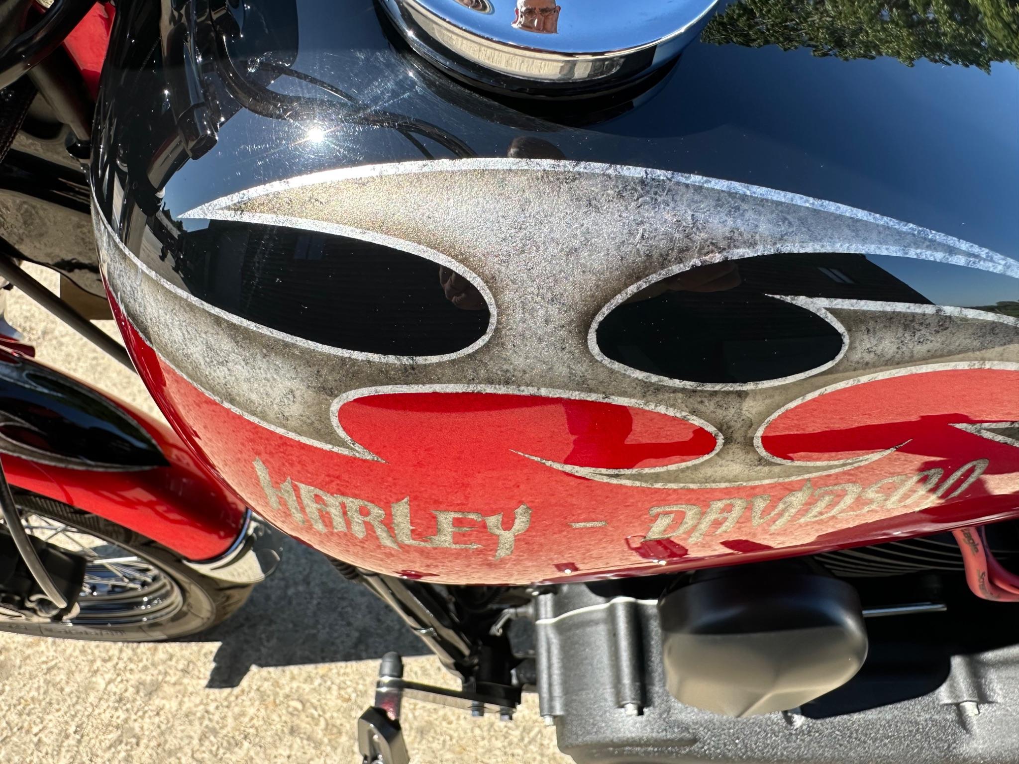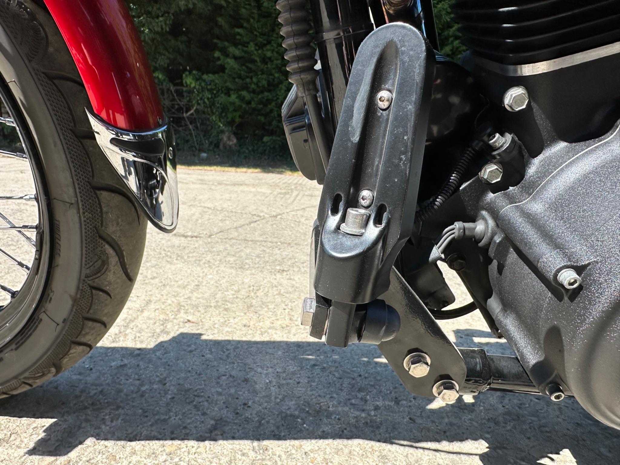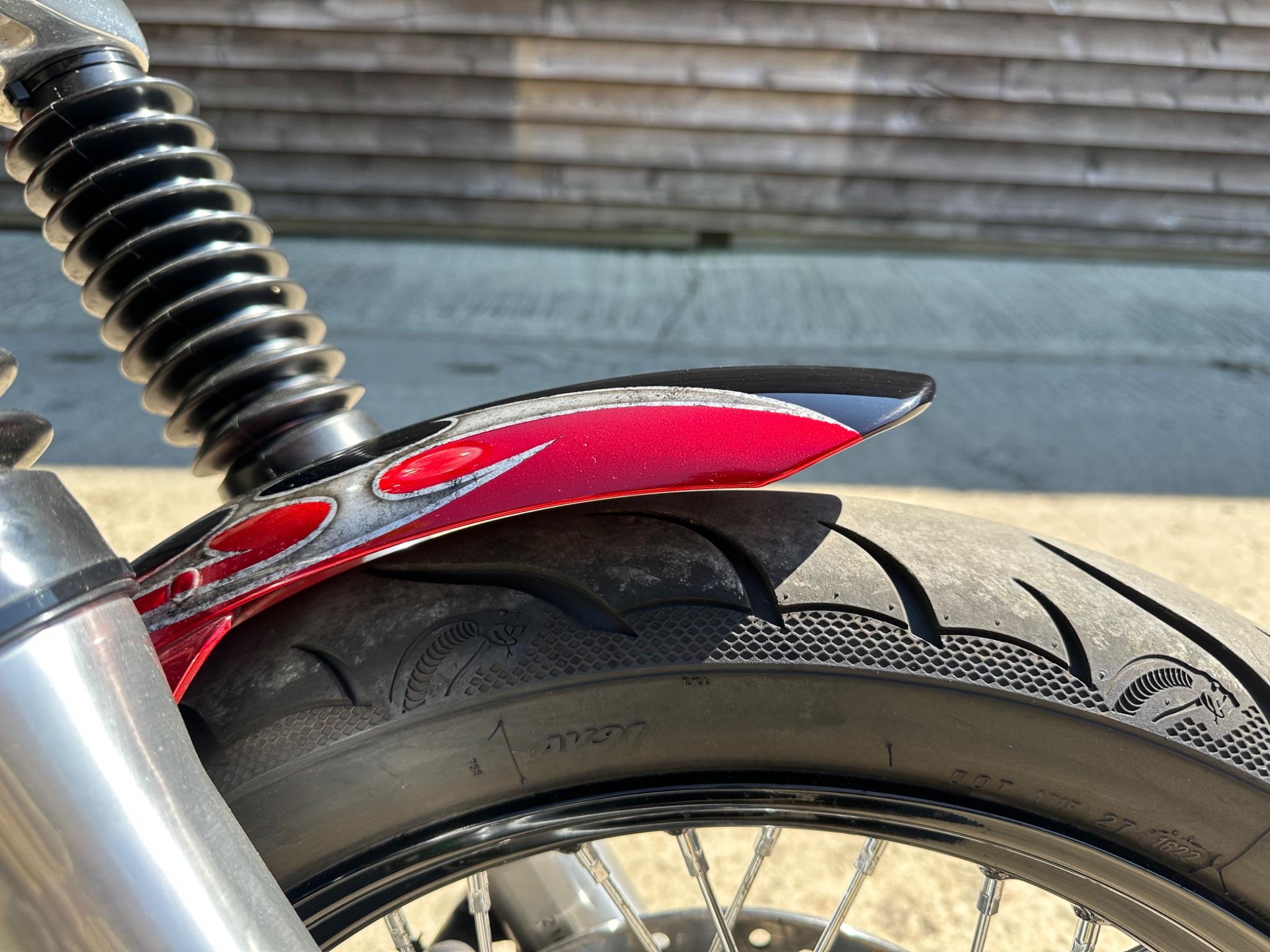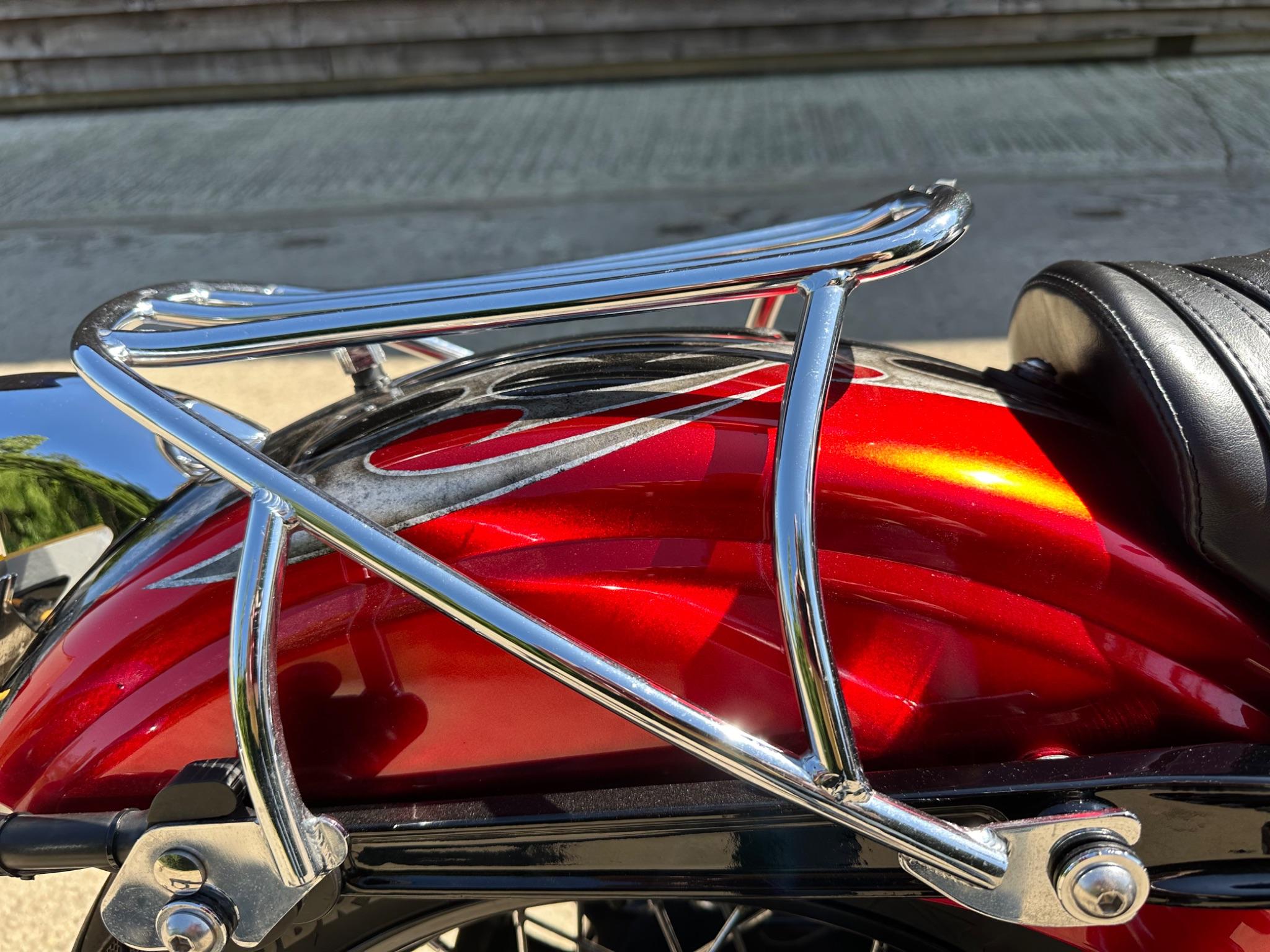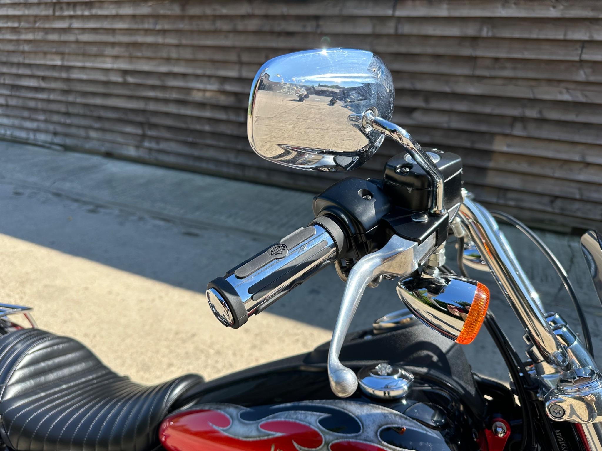 Here is a custom painted Harley Davidson Street Bob in black , red , silver. The paintwork is exquisite! The bike has its original owners/service book and two keys and fobs. The bike has had 12 services done by dealers/specialists and has only just been serviced at 8401 miles in March 2025! The bike has a host of extras and these include a stage one with V&H chrome radius pipes , S&S filter , Screamin Eagle plug leads , fly screen , highway pegs , chrome rack , fork protectors , fork gaiters , black chain guard , Harley cushion grips , black horn cover , Le Pera custom seat and a mega custom paint job!