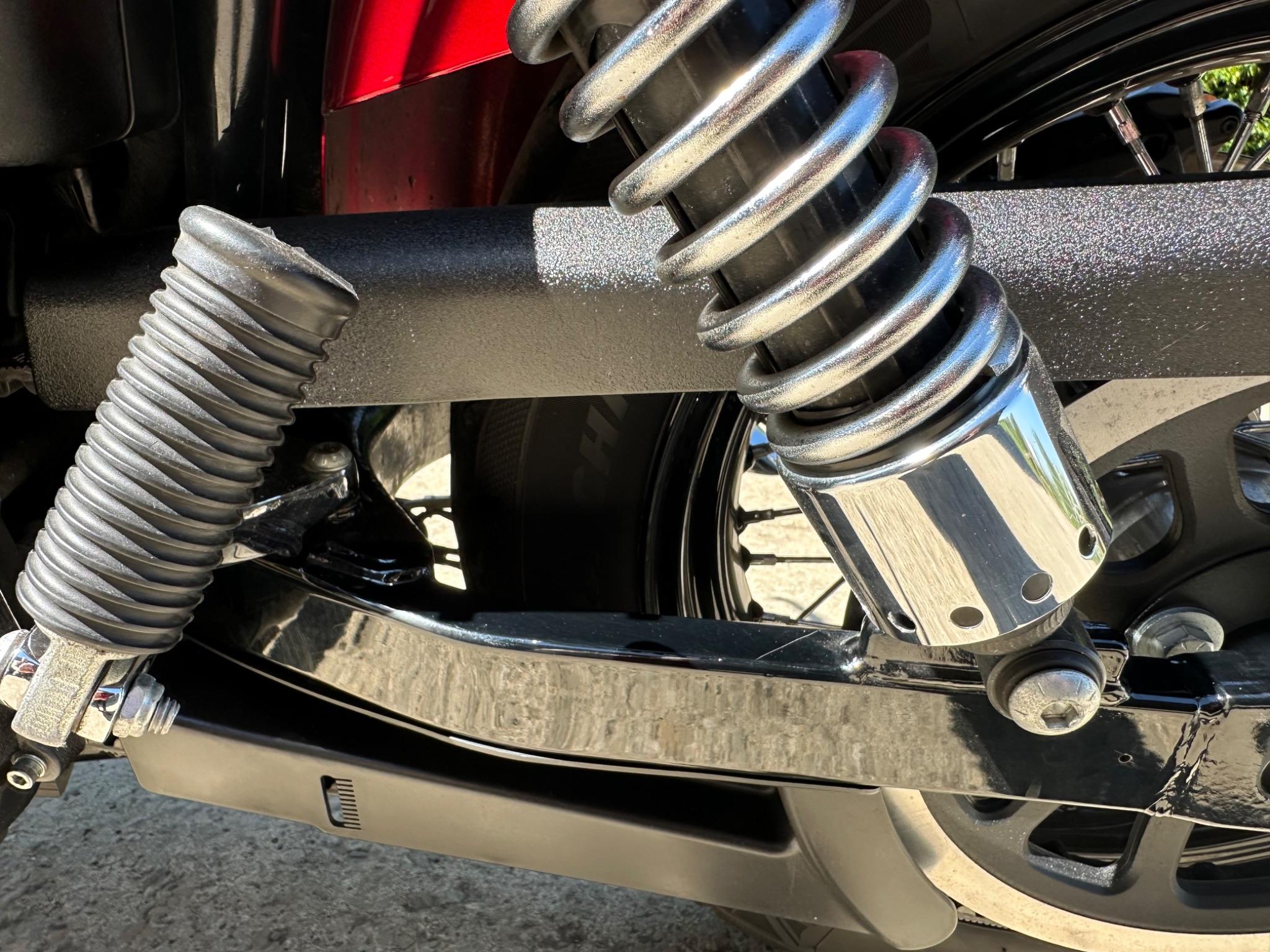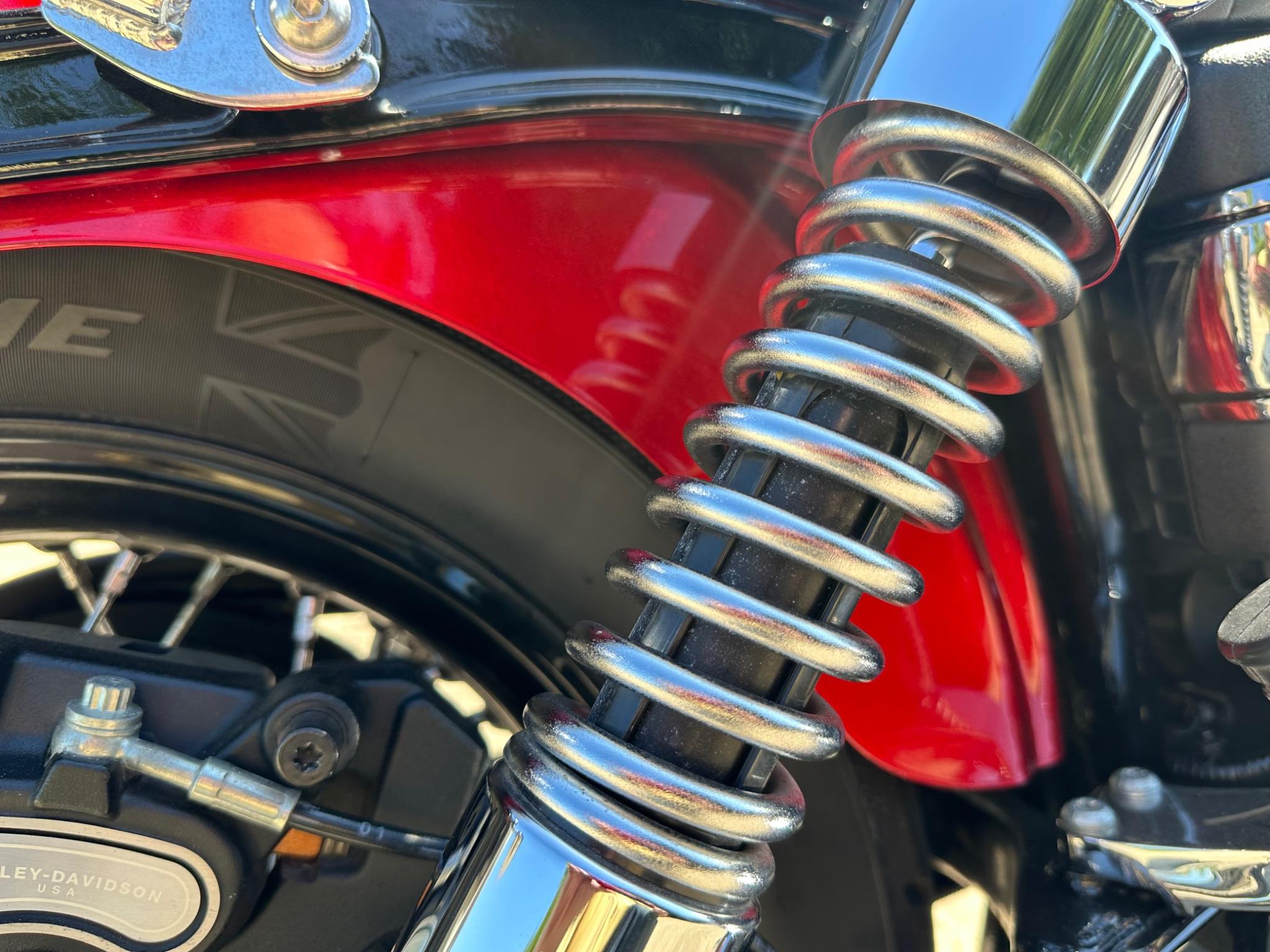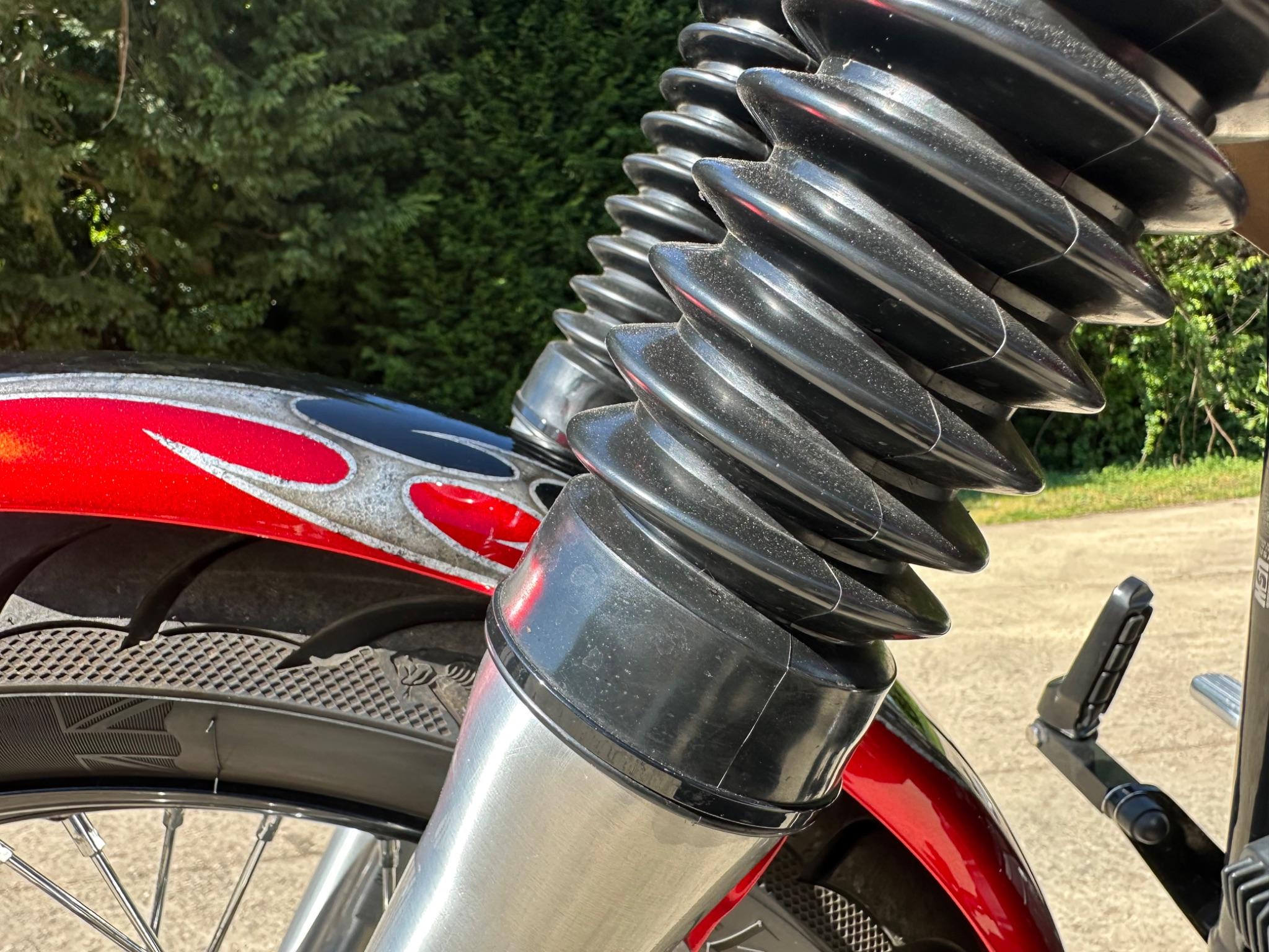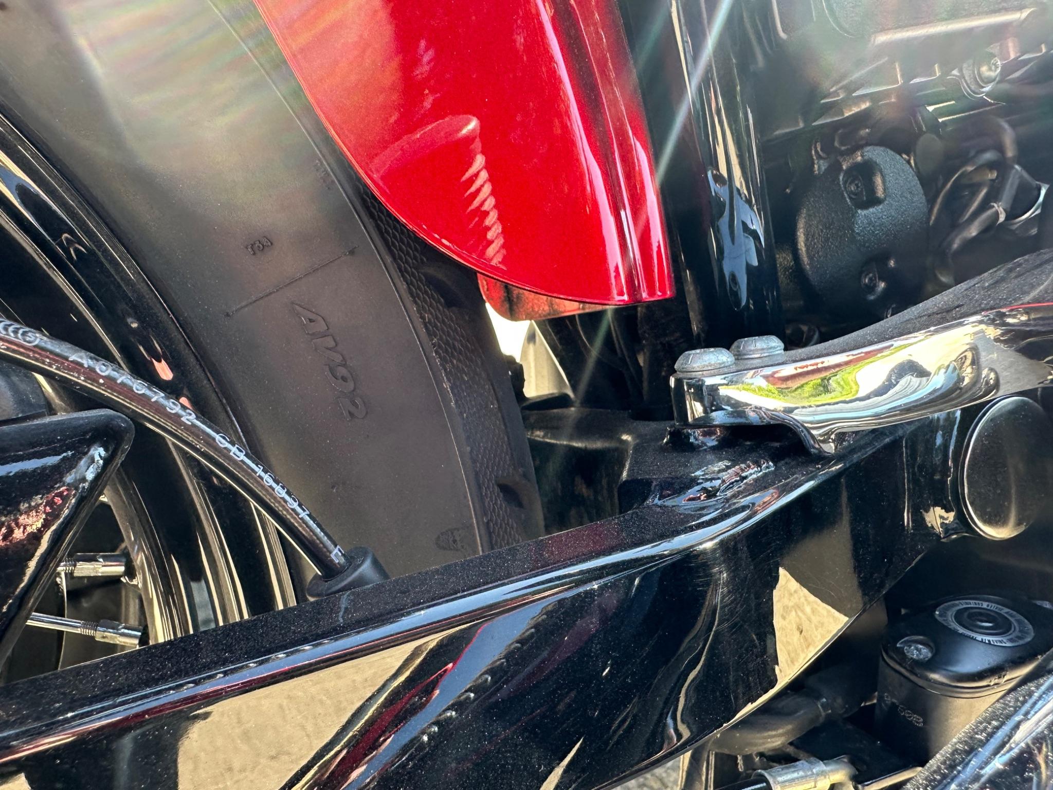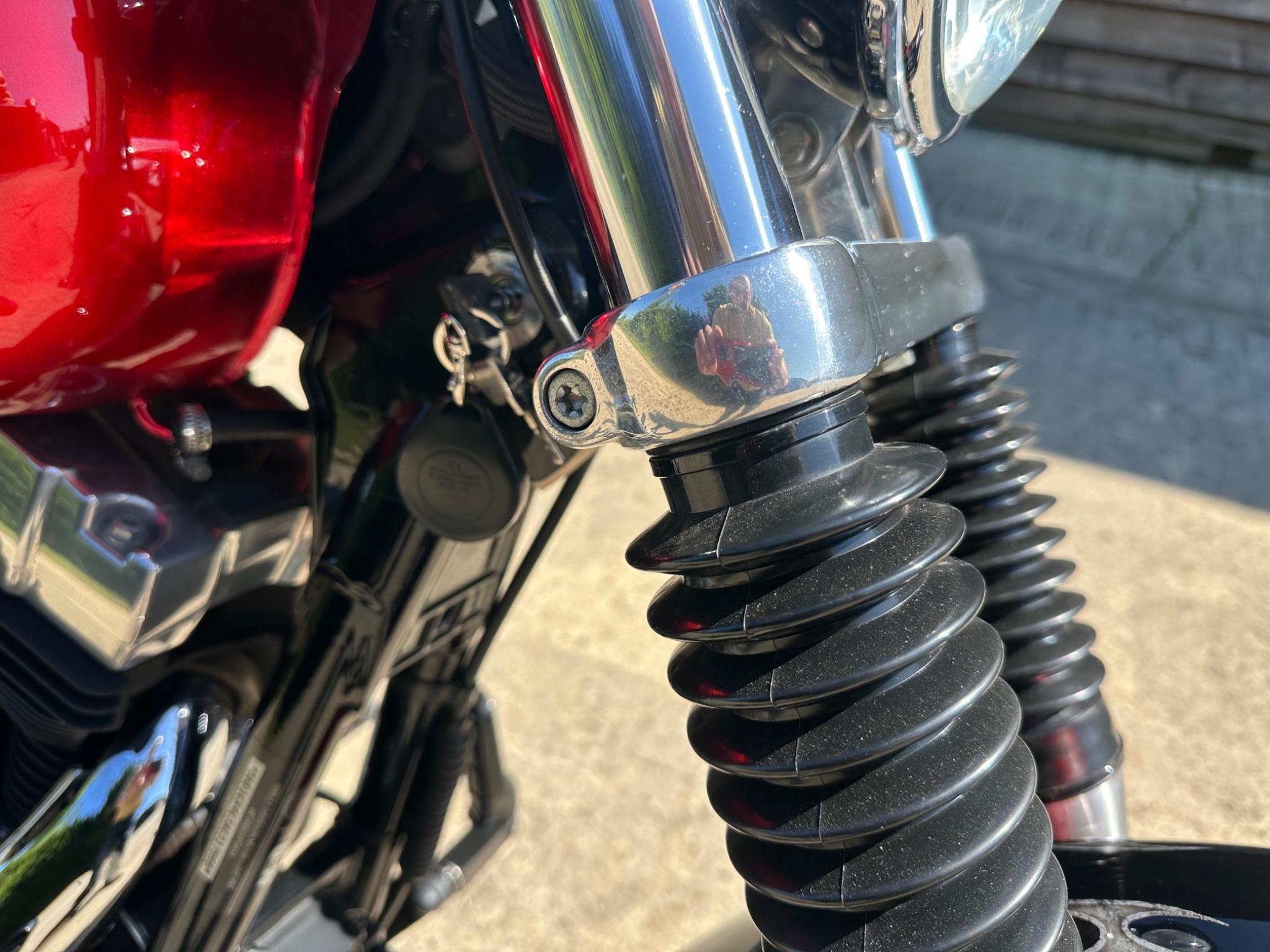 Here is a custom painted Harley Davidson Street Bob in black , red , silver. The paintwork is exquisite! The bike has its original owners/service book and two keys and fobs. The bike has had 12 services done by dealers/specialists and has only just been serviced at 8401 miles in March 2025! The bike has a host of extras and these include a stage one with V&H chrome radius pipes , S&S filter , Screamin Eagle plug leads , fly screen , highway pegs , chrome rack , fork protectors , fork gaiters , black chain guard , Harley cushion grips , black horn cover , Le Pera custom seat and a mega custom paint job!