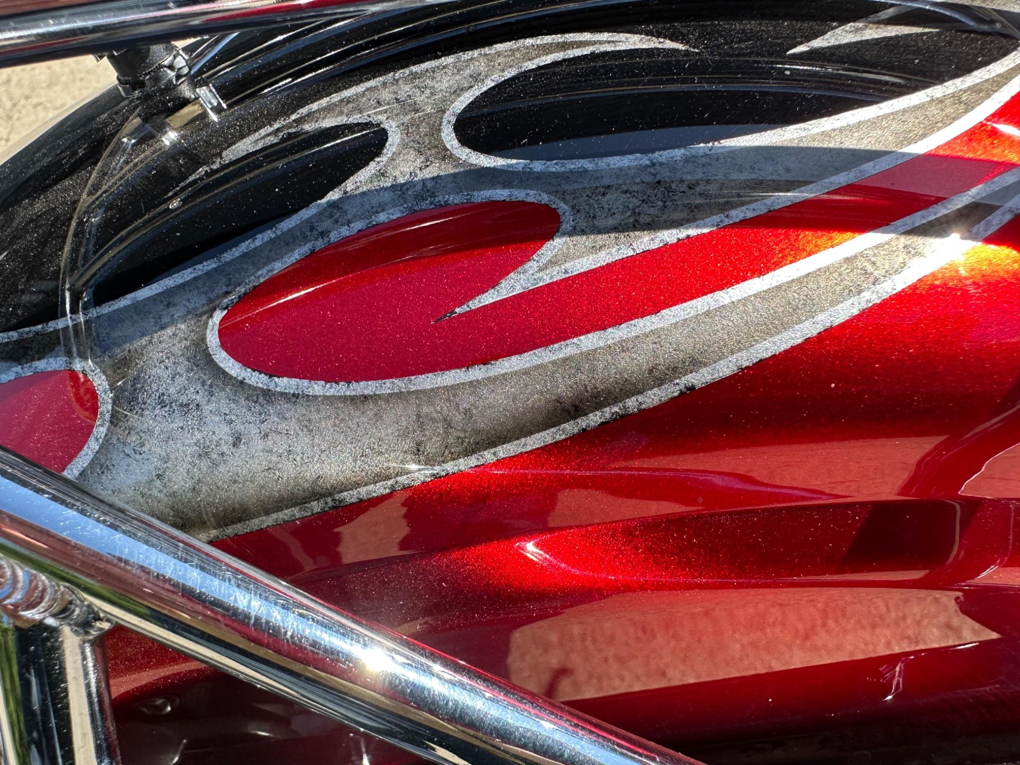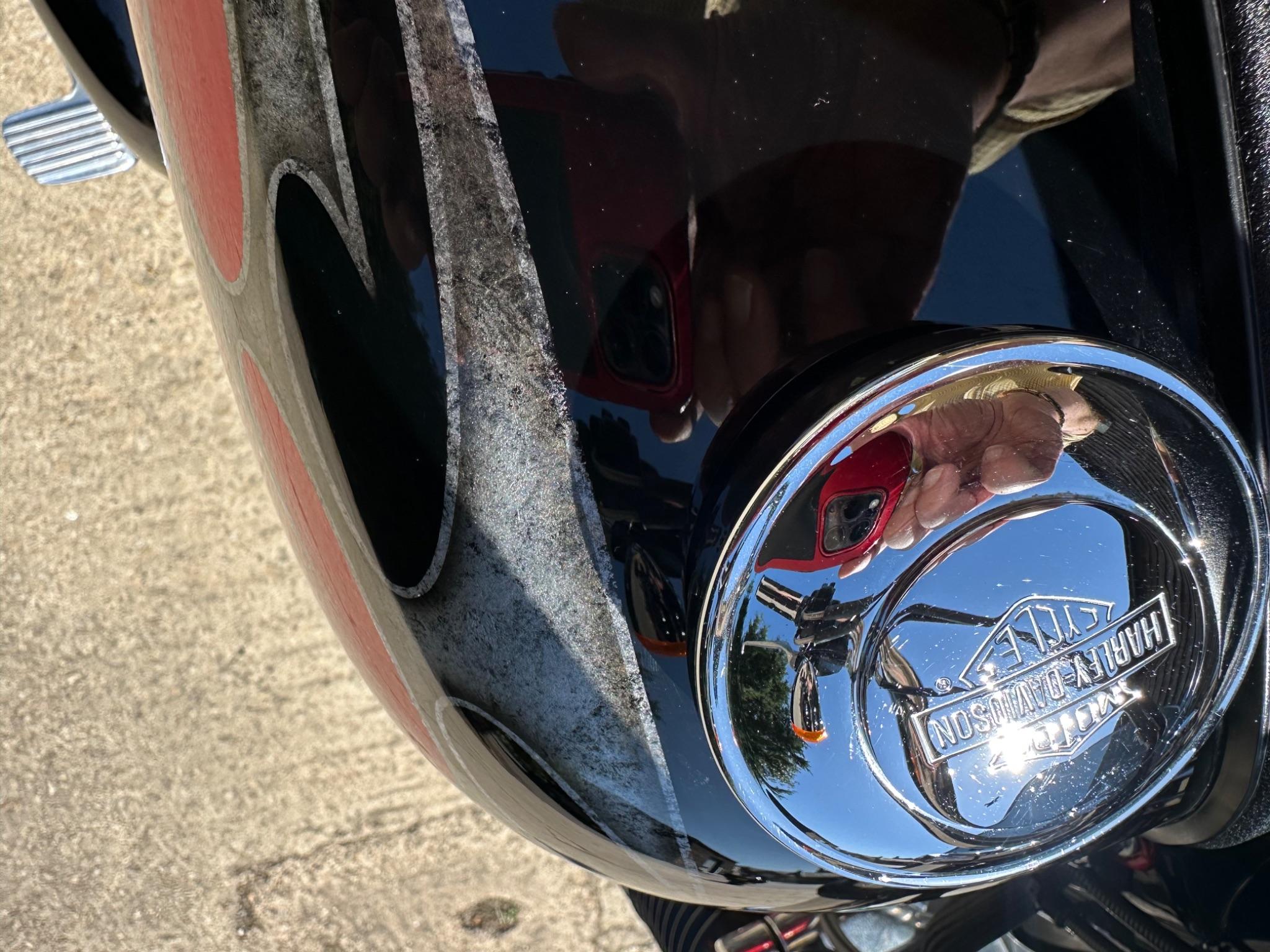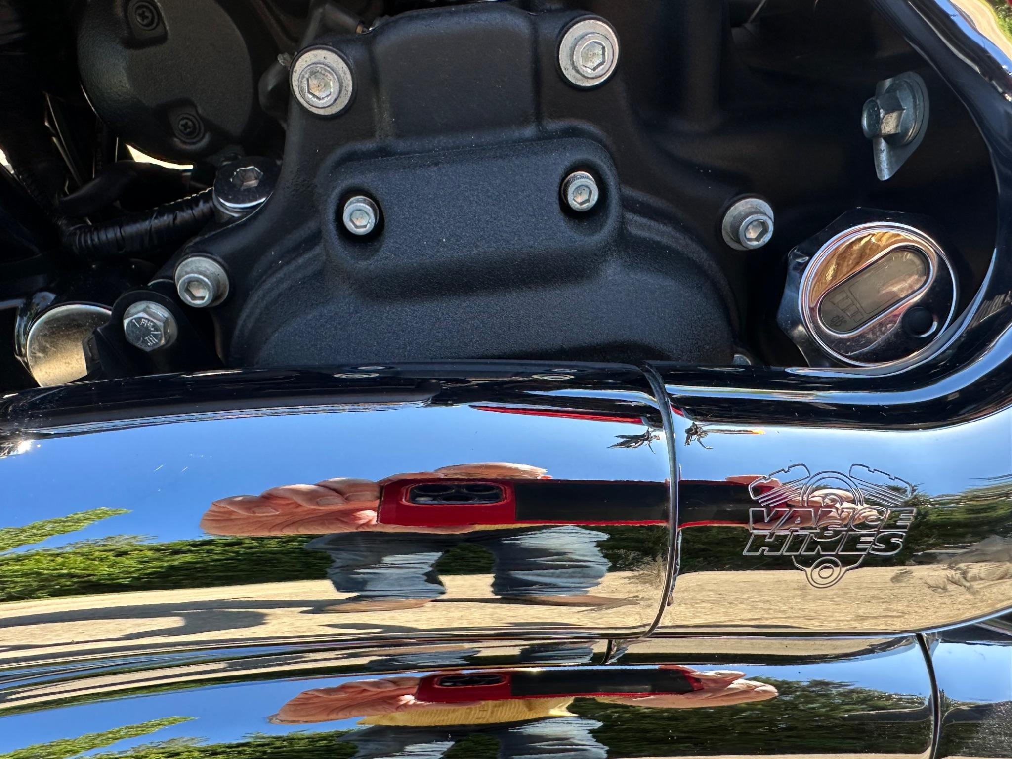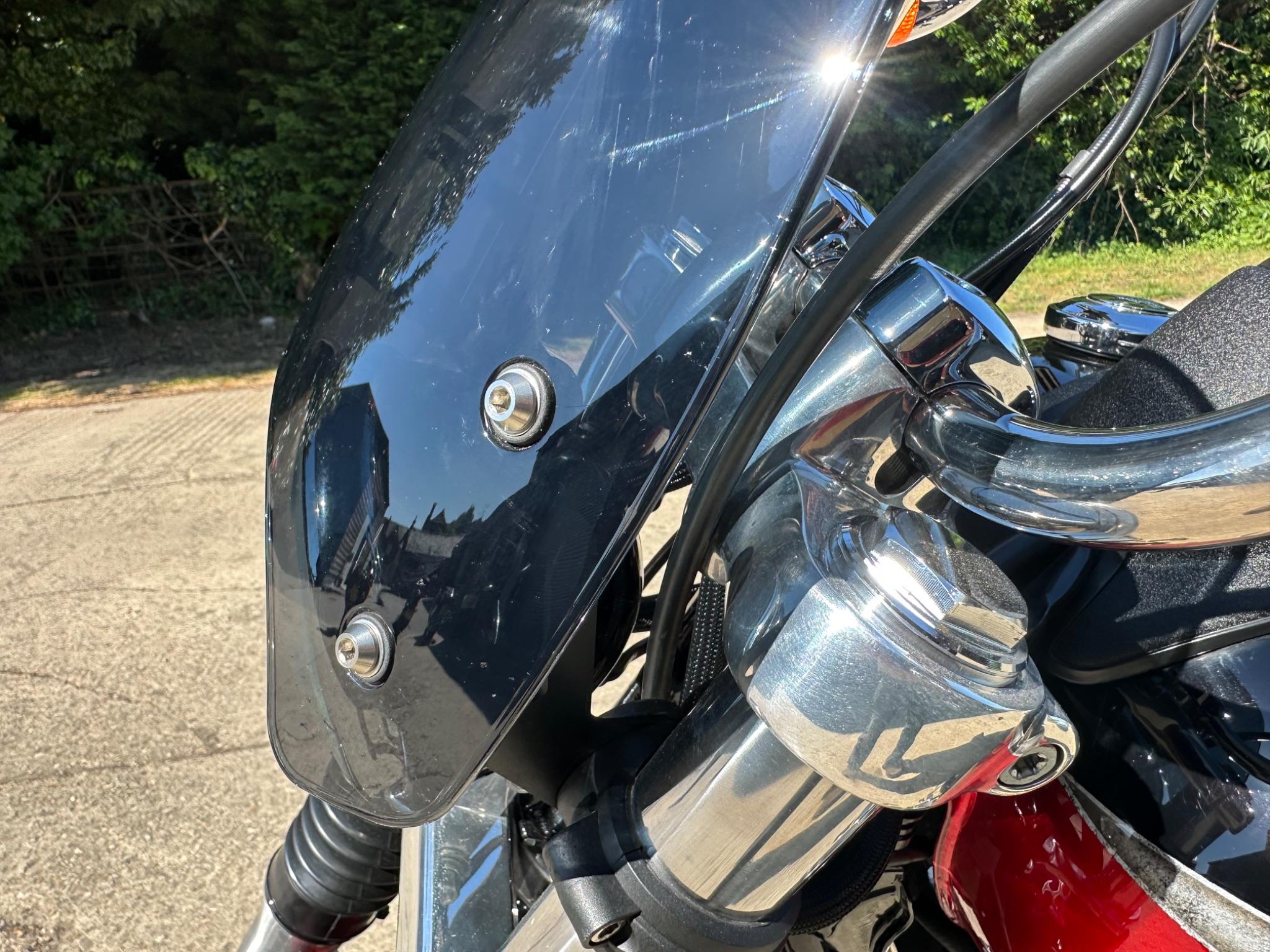 Here is a custom painted Harley Davidson Street Bob in black , red , silver. The paintwork is exquisite! The bike has its original owners/service book and two keys and fobs. The bike has had 12 services done by dealers/specialists and has only just been serviced at 8401 miles in March 2025! The bike has a host of extras and these include a stage one with V&H chrome radius pipes , S&S filter , Screamin Eagle plug leads , fly screen , highway pegs , chrome rack , fork protectors , fork gaiters , black chain guard , Harley cushion grips , black horn cover , Le Pera custom seat and a mega custom paint job!