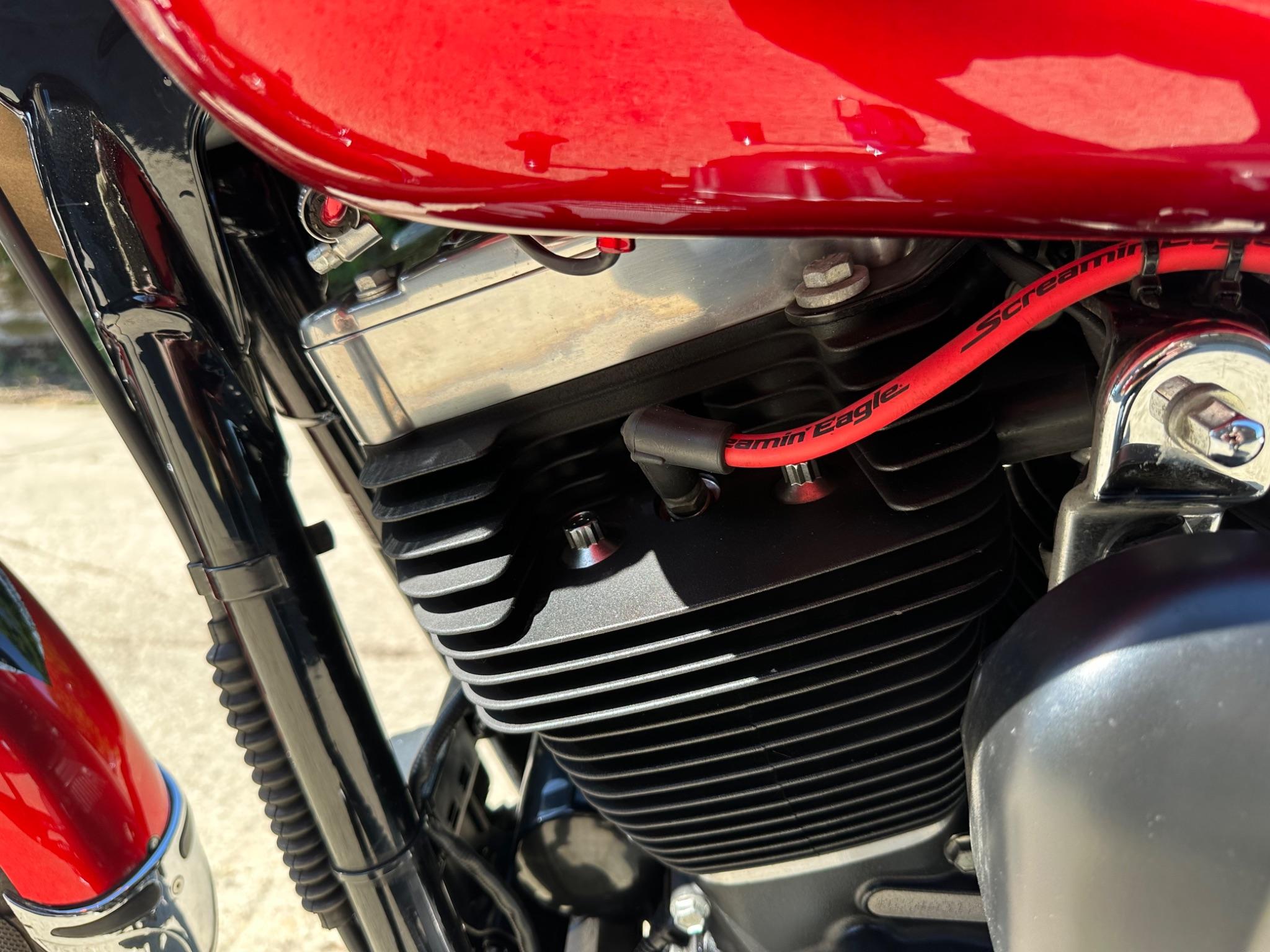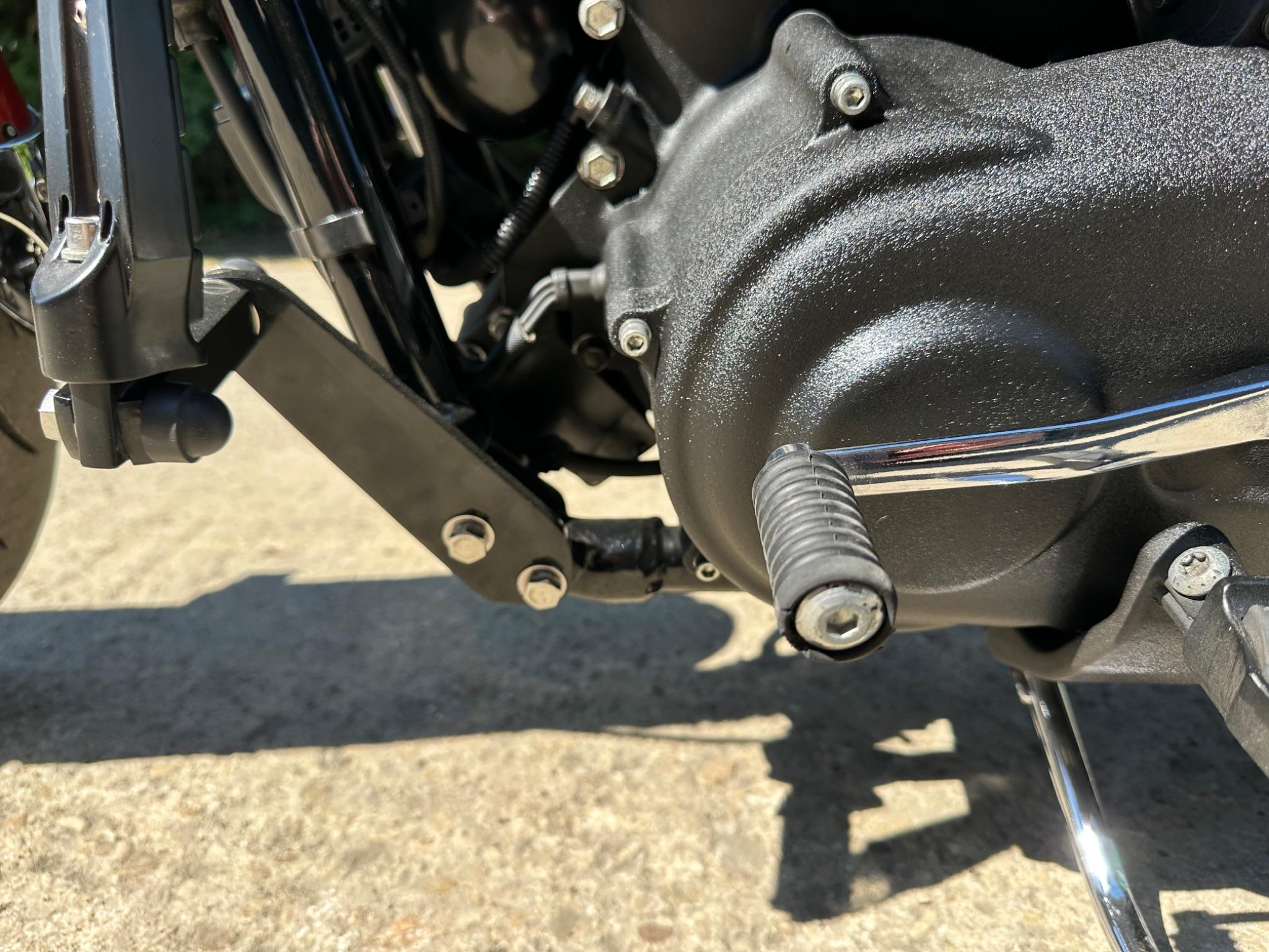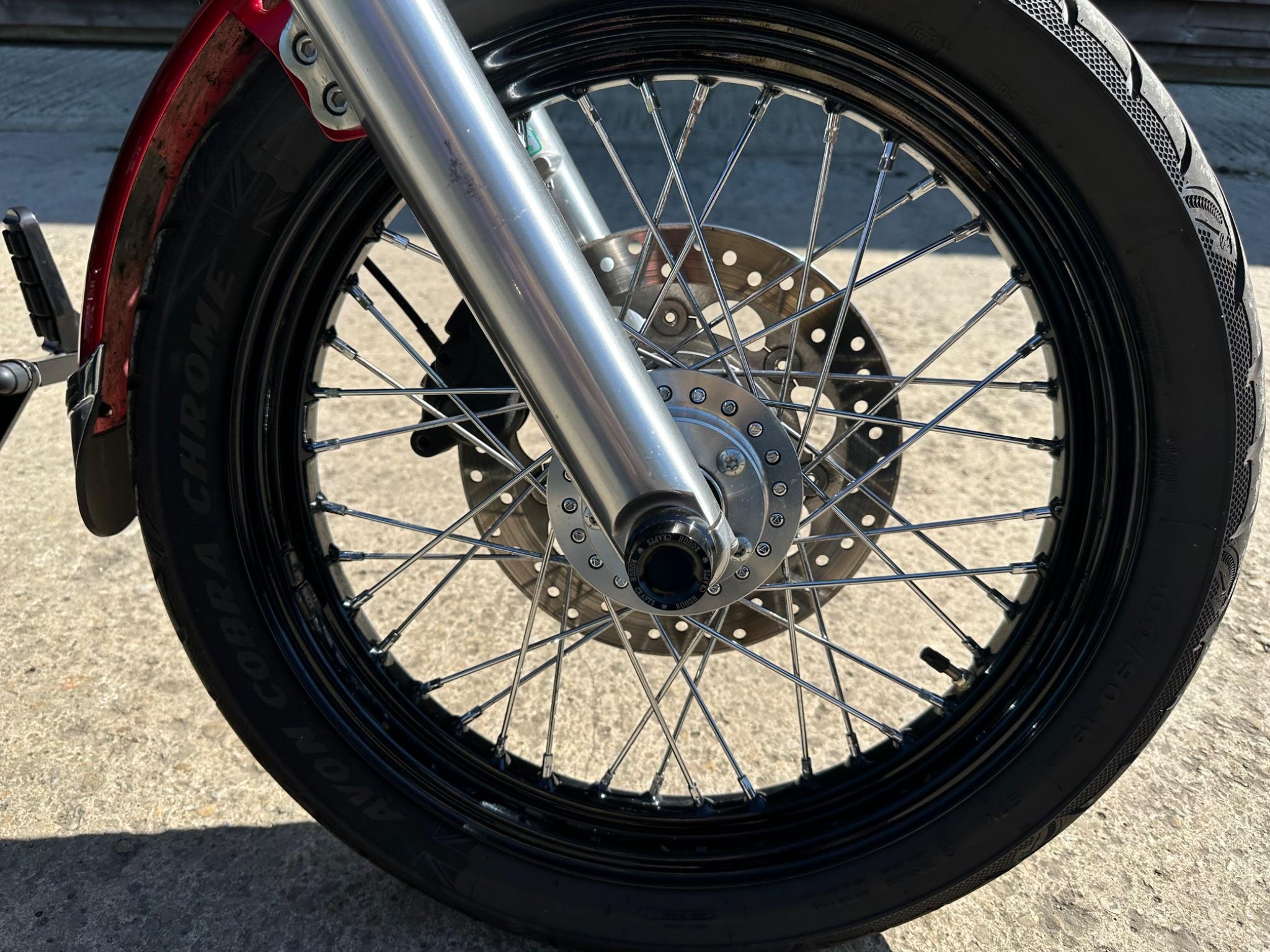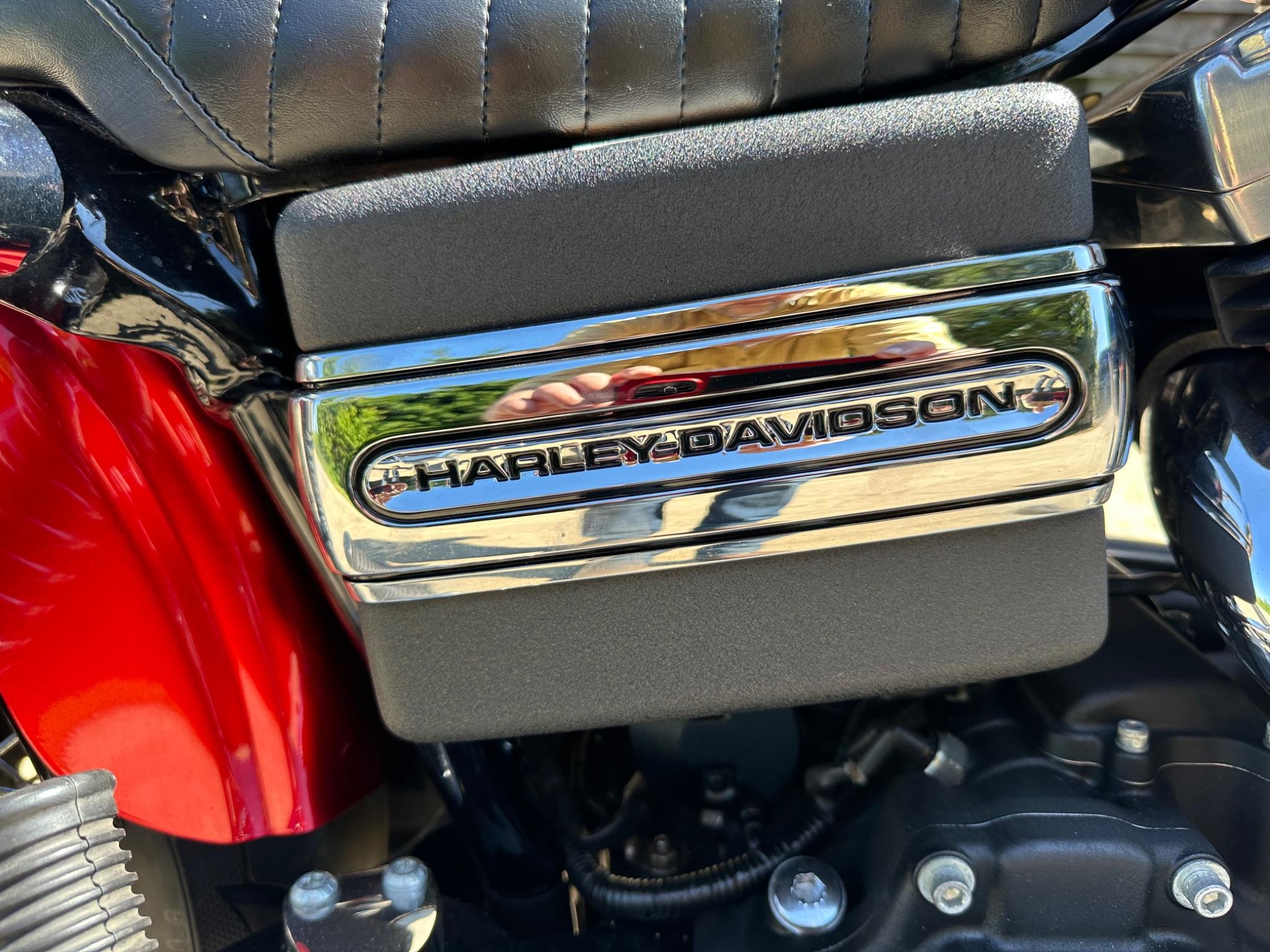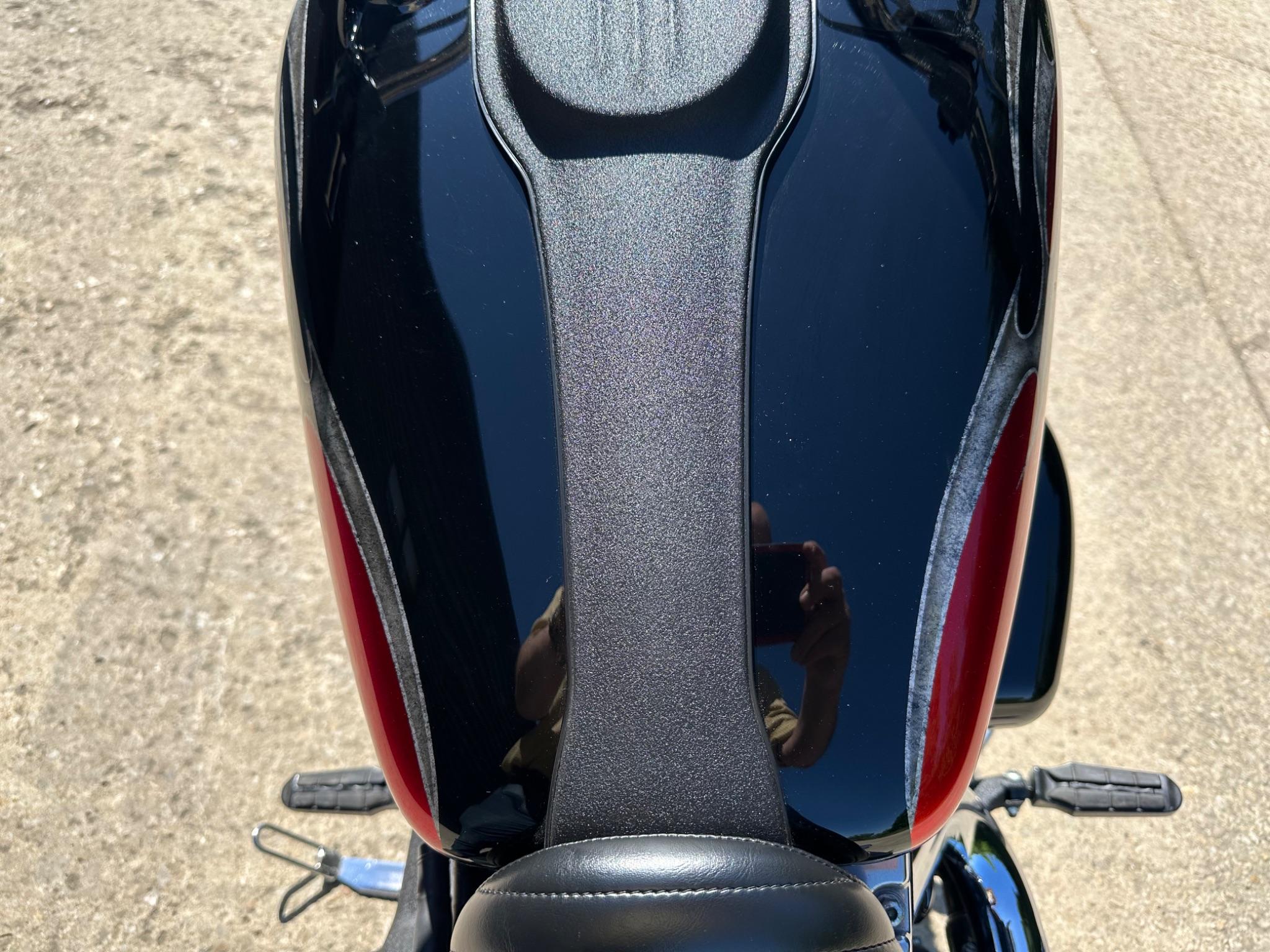 Here is a custom painted Harley Davidson Street Bob in black , red , silver. The paintwork is exquisite! The bike has its original owners/service book and two keys and fobs. The bike has had 12 services done by dealers/specialists and has only just been serviced at 8401 miles in March 2025! The bike has a host of extras and these include a stage one with V&H chrome radius pipes , S&S filter , Screamin Eagle plug leads , fly screen , highway pegs , chrome rack , fork protectors , fork gaiters , black chain guard , Harley cushion grips , black horn cover , Le Pera custom seat and a mega custom paint job!