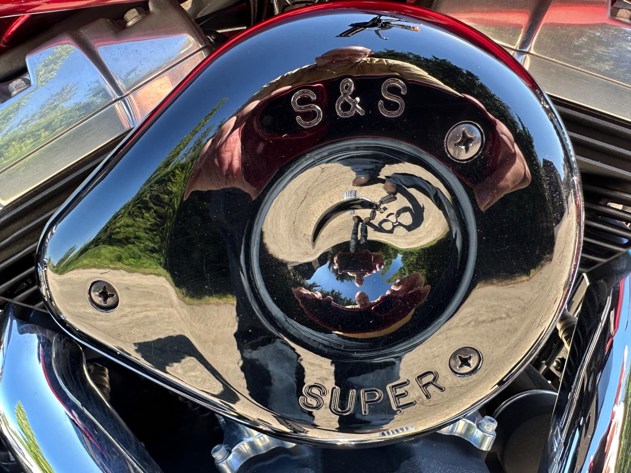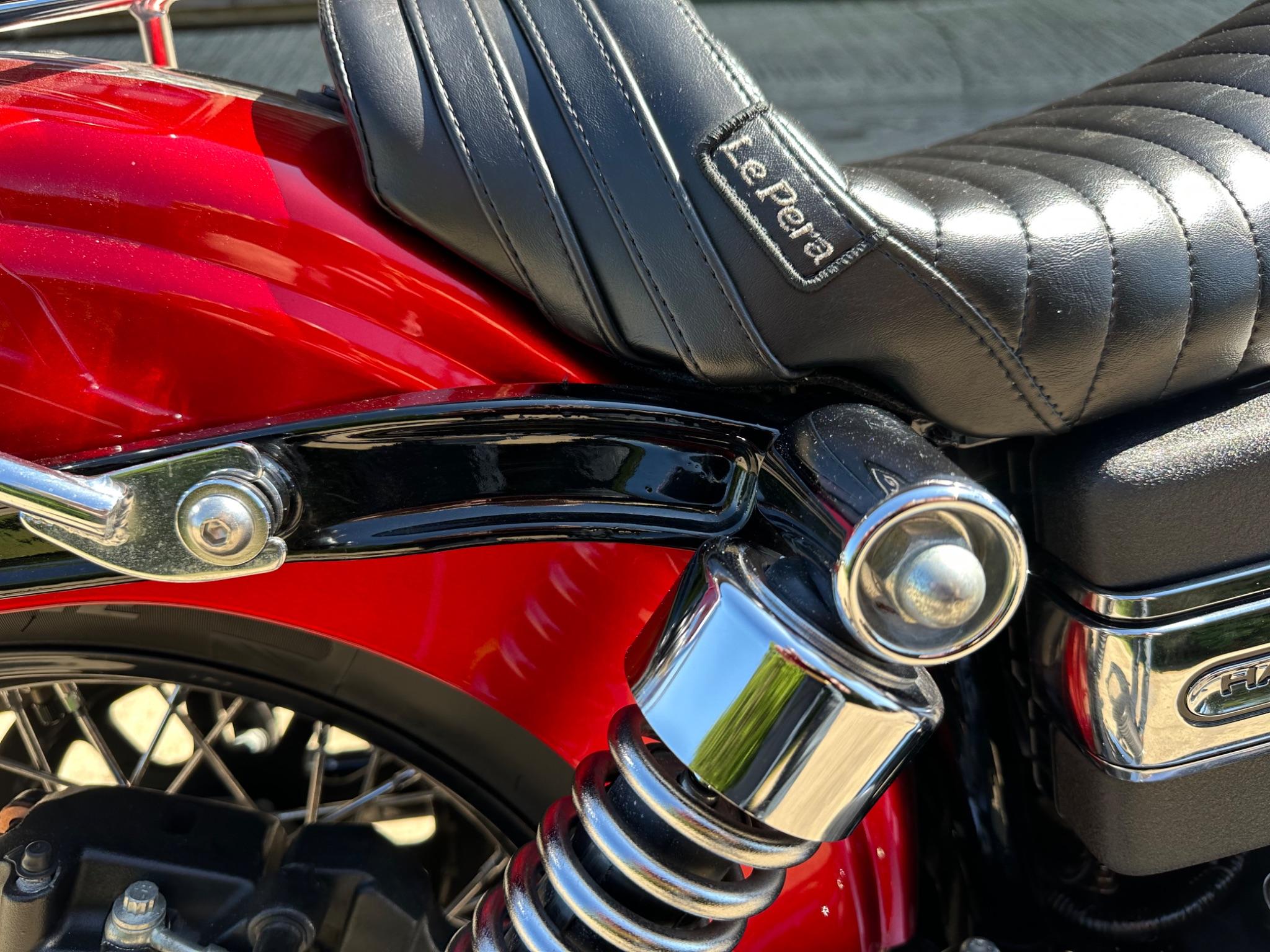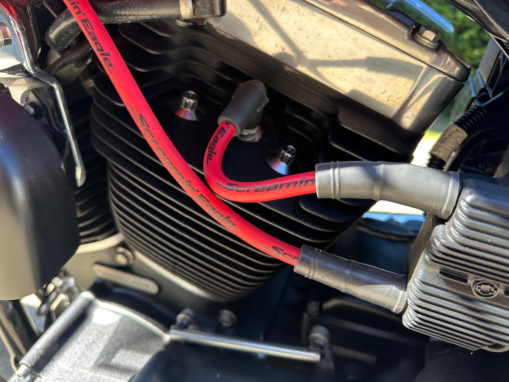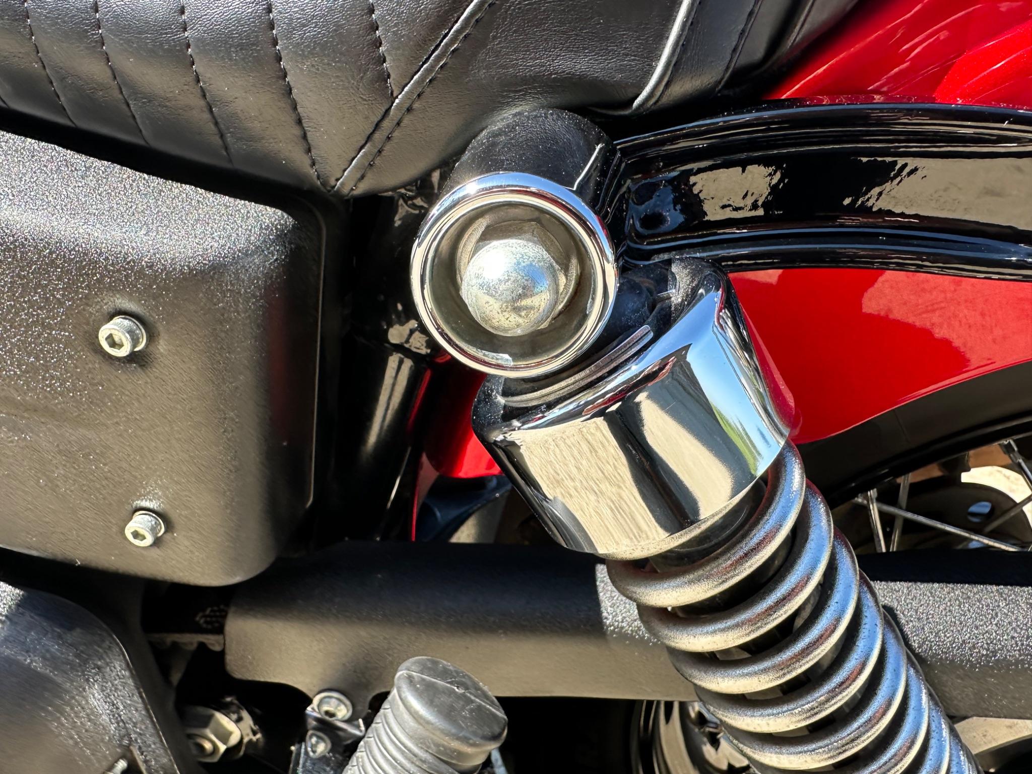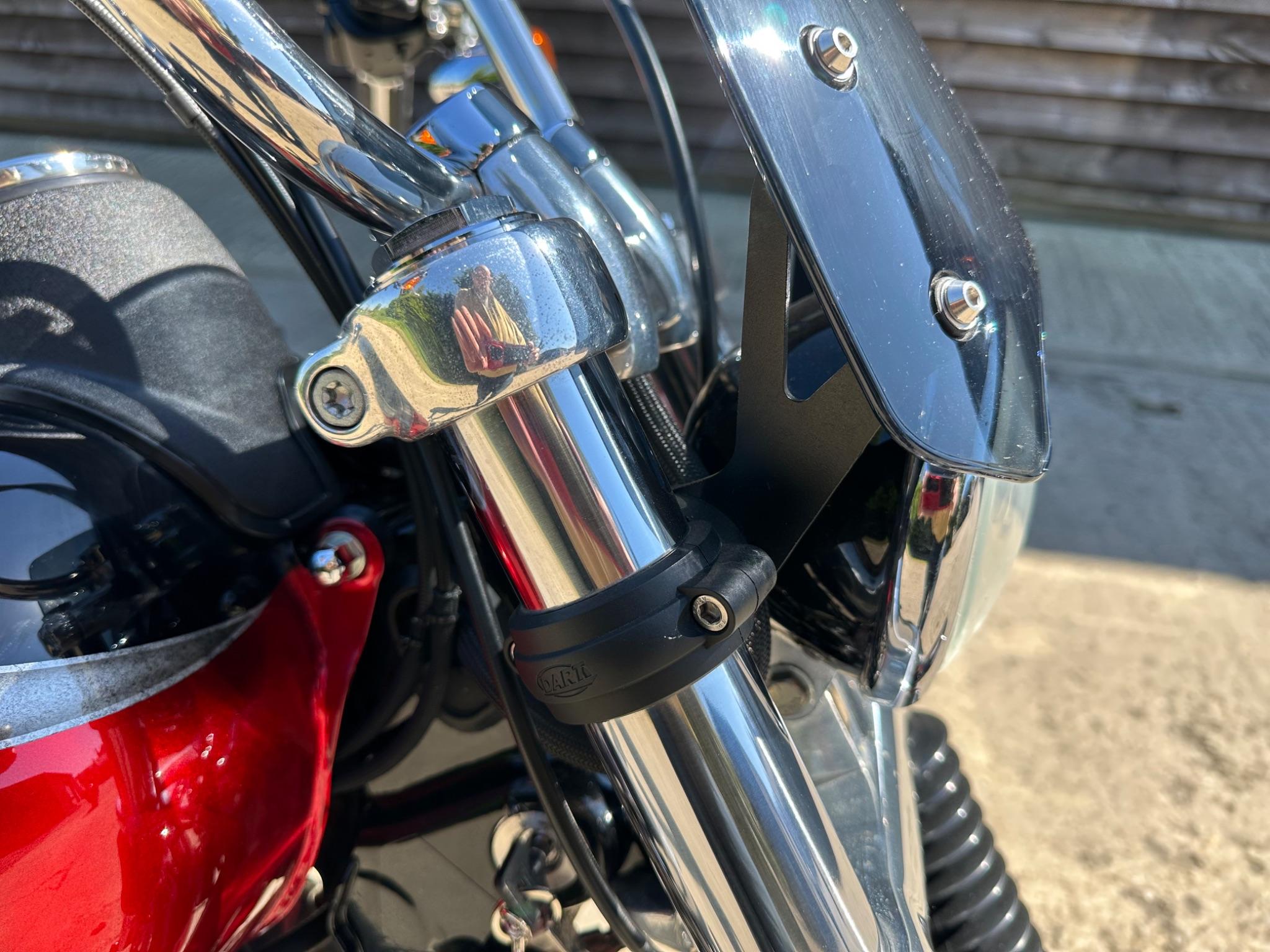 Here is a custom painted Harley Davidson Street Bob in black , red , silver. The paintwork is exquisite! The bike has its original owners/service book and two keys and fobs. The bike has had 12 services done by dealers/specialists and has only just been serviced at 8401 miles in March 2025! The bike has a host of extras and these include a stage one with V&H chrome radius pipes , S&S filter , Screamin Eagle plug leads , fly screen , highway pegs , chrome rack , fork protectors , fork gaiters , black chain guard , Harley cushion grips , black horn cover , Le Pera custom seat and a mega custom paint job!