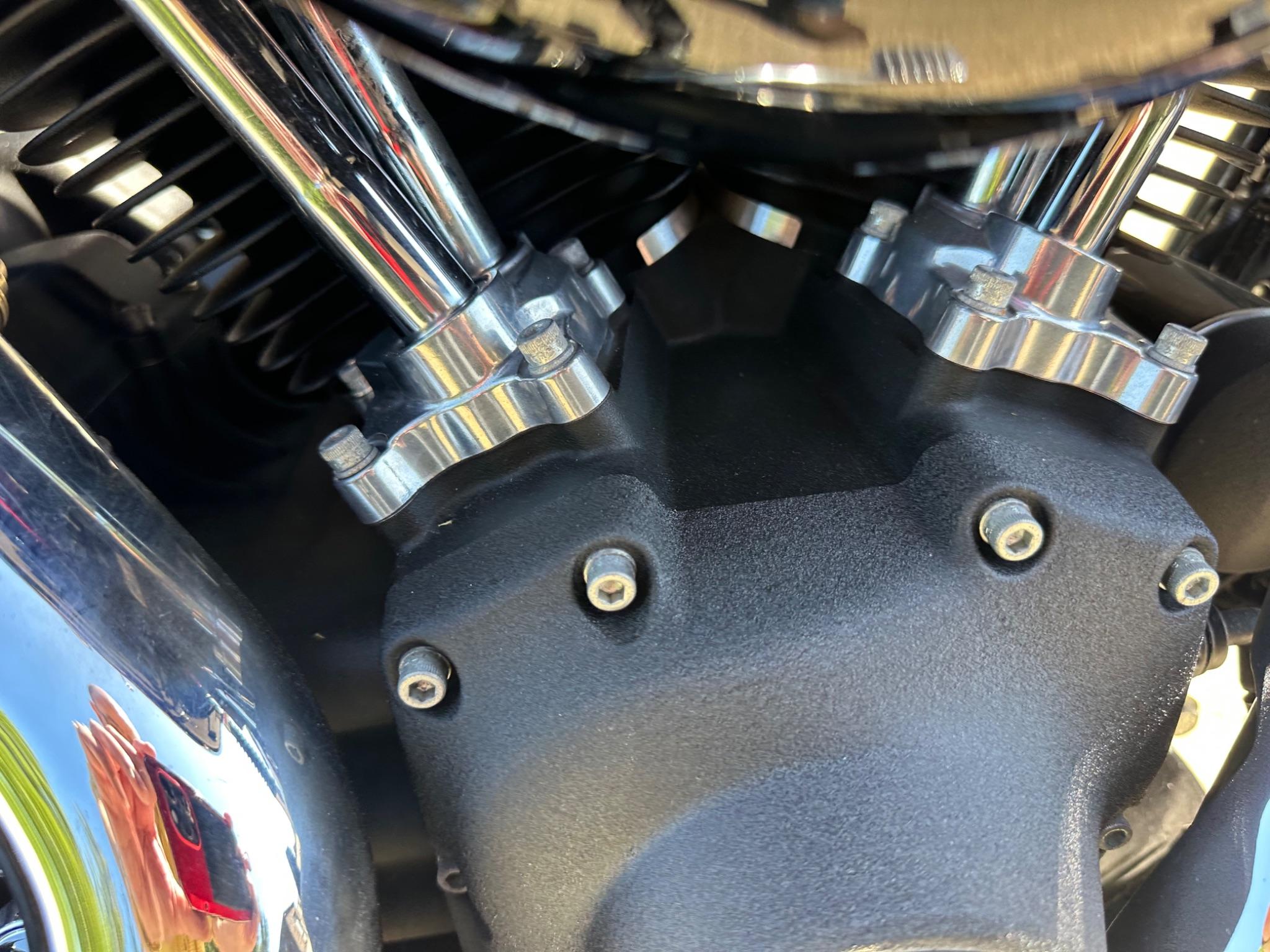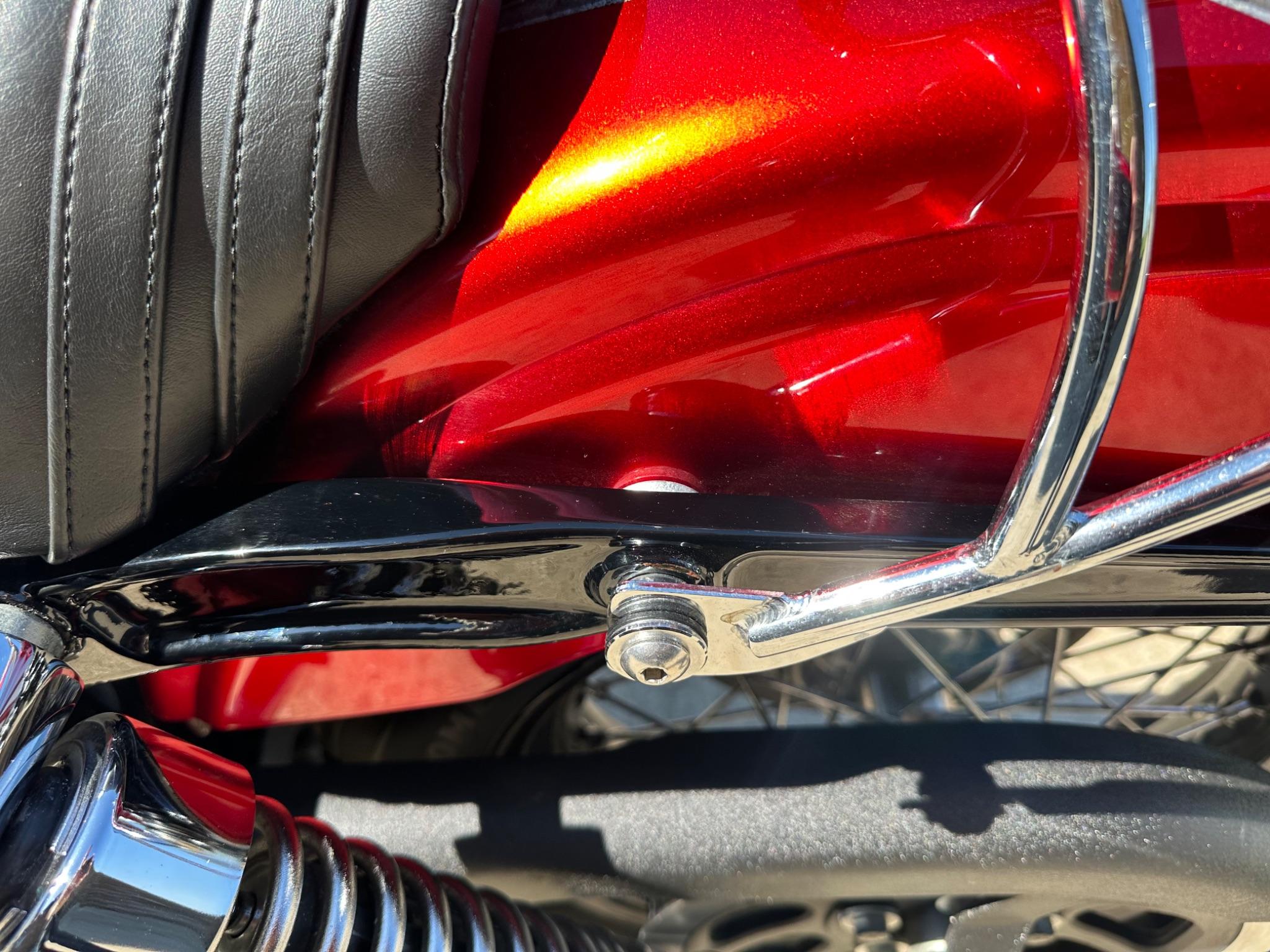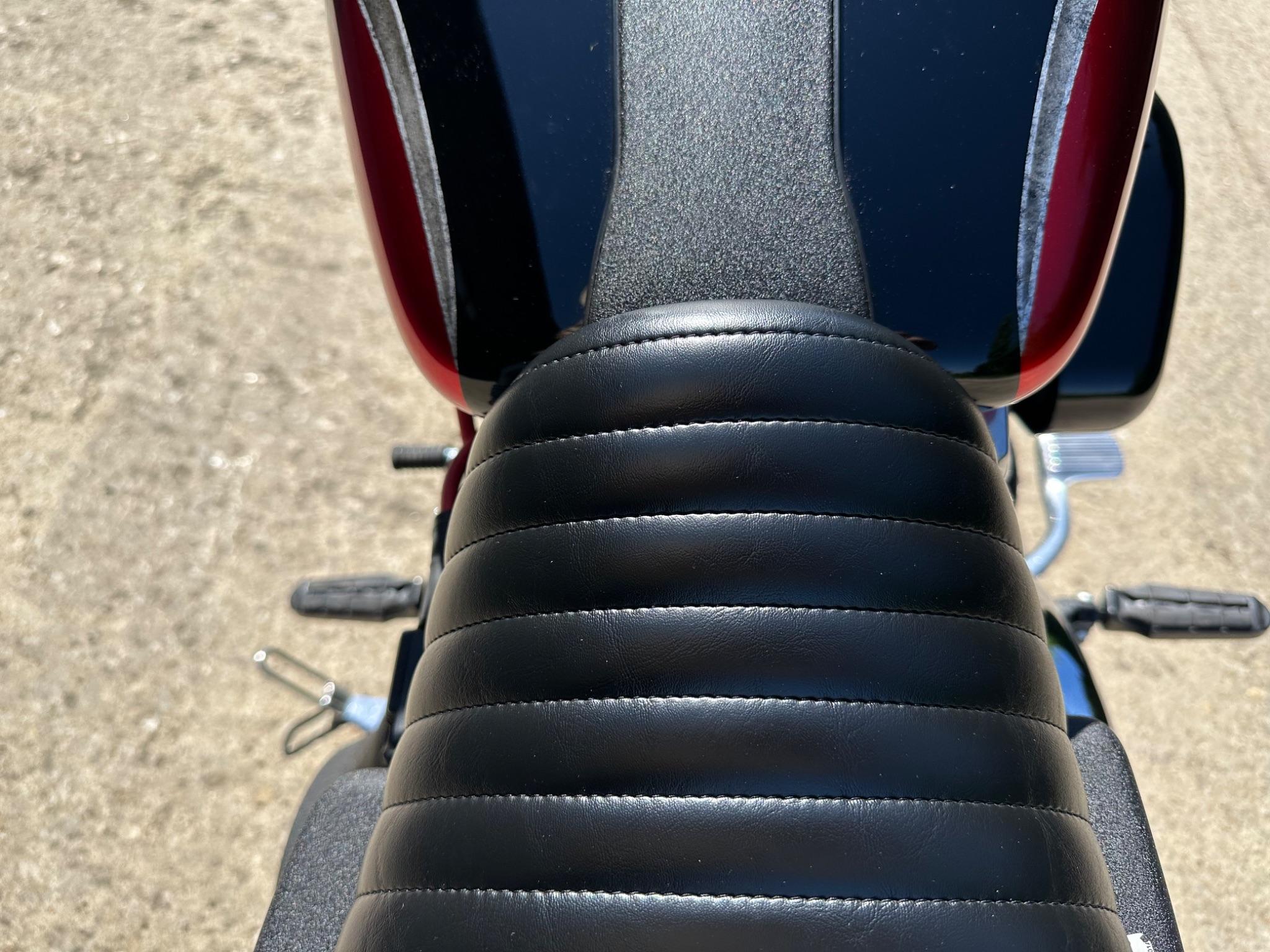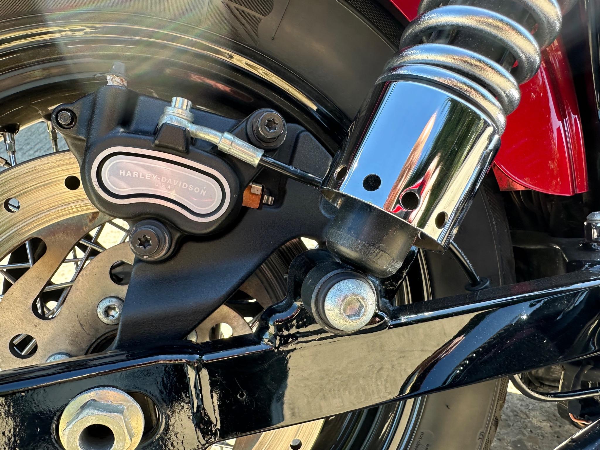 Here is a custom painted Harley Davidson Street Bob in black , red , silver. The paintwork is exquisite! The bike has its original owners/service book and two keys and fobs. The bike has had 12 services done by dealers/specialists and has only just been serviced at 8401 miles in March 2025! The bike has a host of extras and these include a stage one with V&H chrome radius pipes , S&S filter , Screamin Eagle plug leads , fly screen , highway pegs , chrome rack , fork protectors , fork gaiters , black chain guard , Harley cushion grips , black horn cover , Le Pera custom seat and a mega custom paint job!