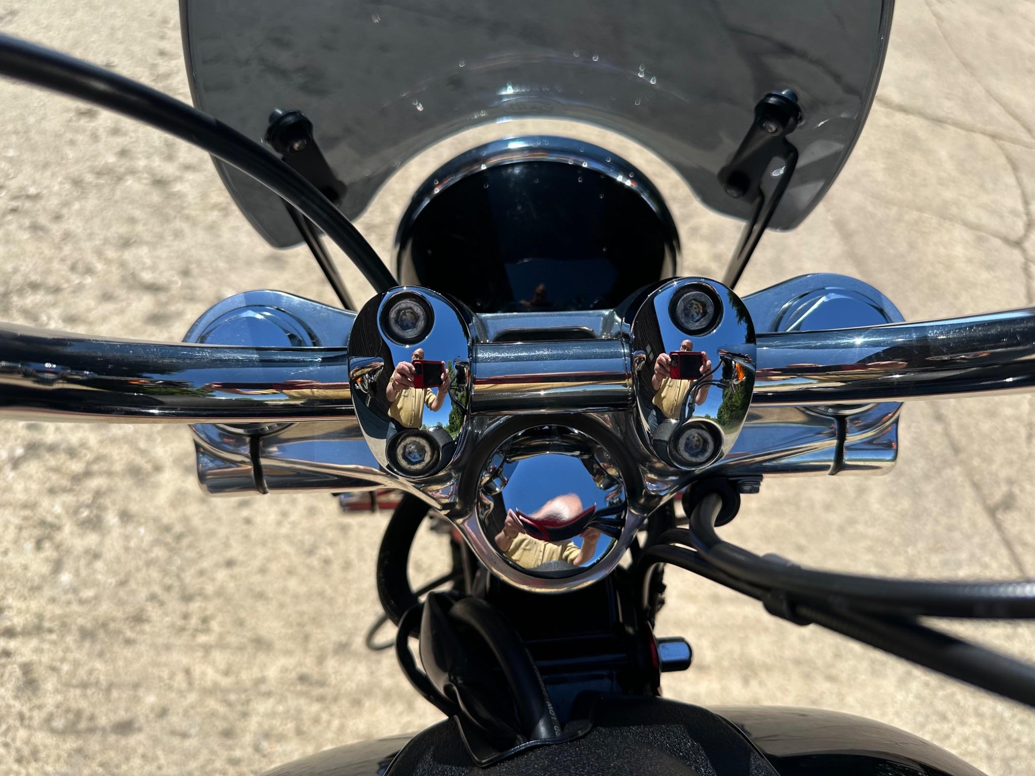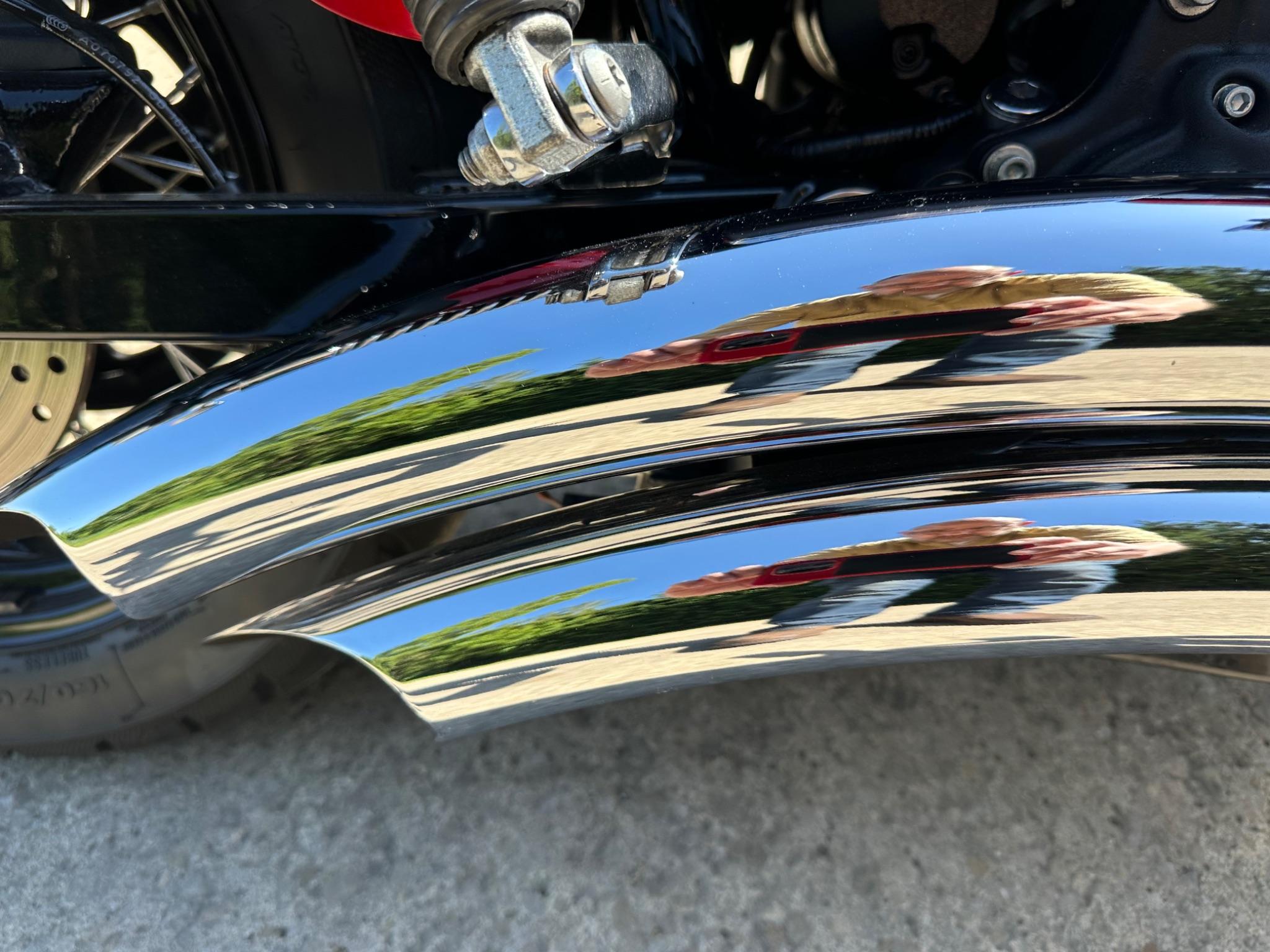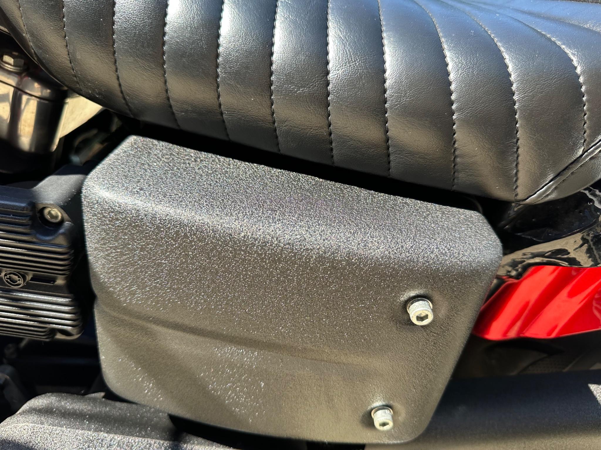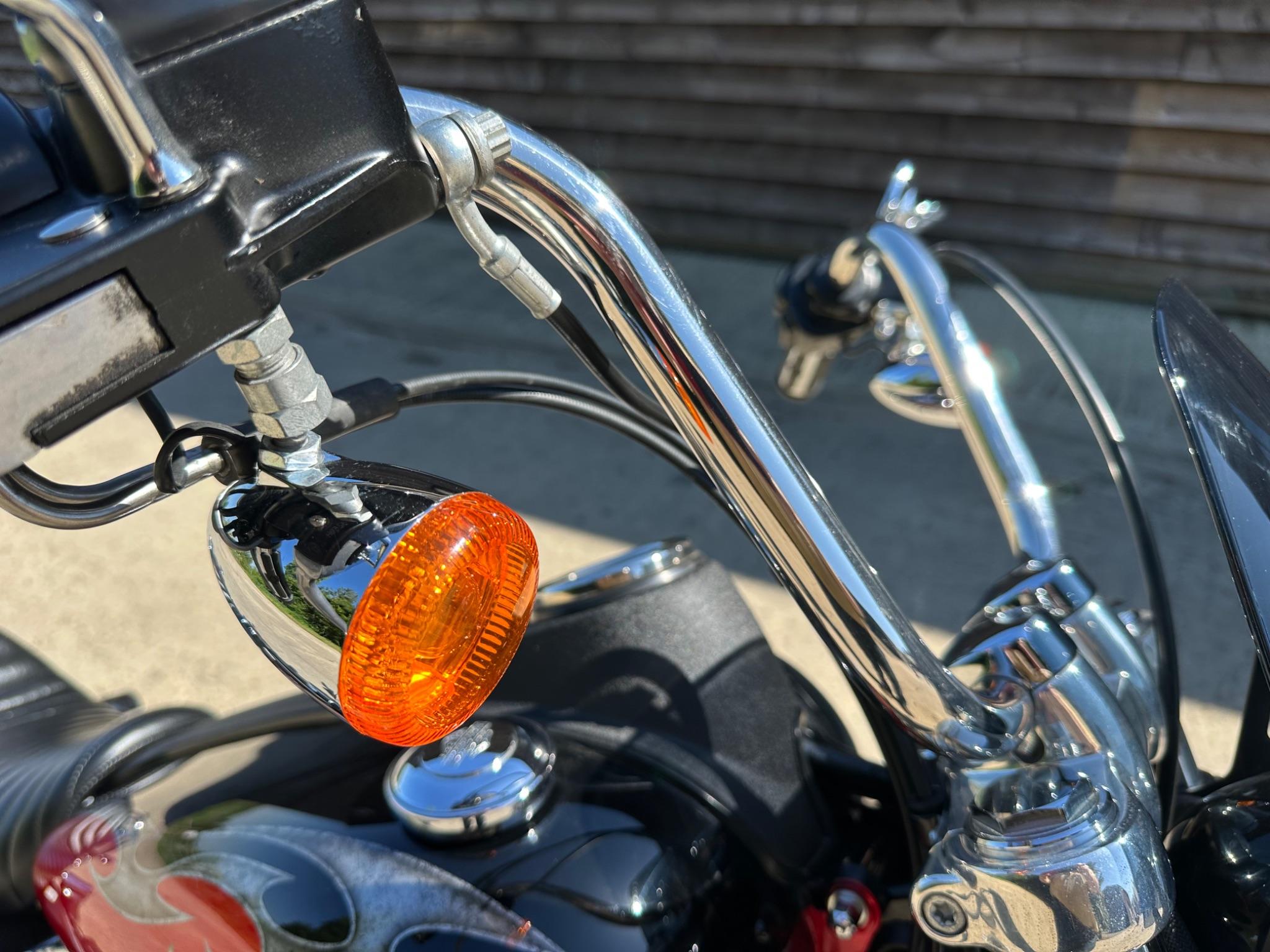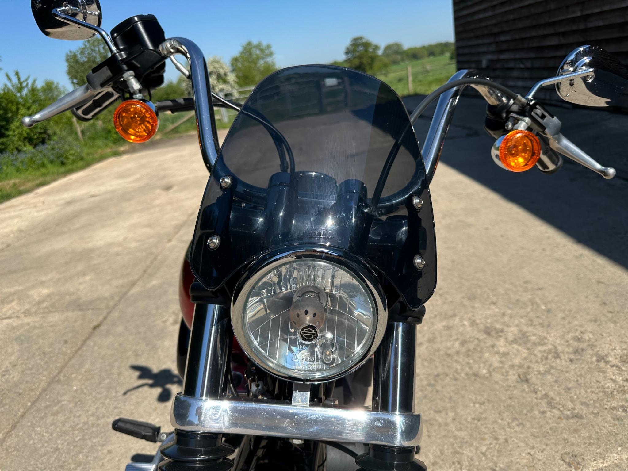 Here is a custom painted Harley Davidson Street Bob in black , red , silver. The paintwork is exquisite! The bike has its original owners/service book and two keys and fobs. The bike has had 12 services done by dealers/specialists and has only just been serviced at 8401 miles in March 2025! The bike has a host of extras and these include a stage one with V&H chrome radius pipes , S&S filter , Screamin Eagle plug leads , fly screen , highway pegs , chrome rack , fork protectors , fork gaiters , black chain guard , Harley cushion grips , black horn cover , Le Pera custom seat and a mega custom paint job!