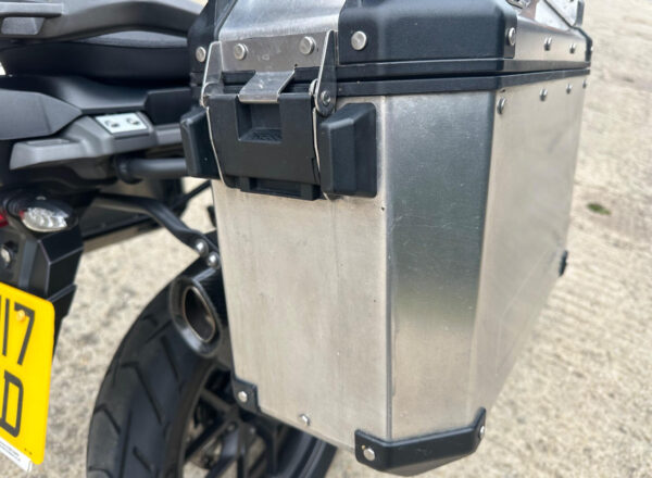 Here we have an immaculate Triumph Explorer 1200 XRX Low with only 9766 miles. We sold the bike to the last owner and it has come back in against a 1200 Tiger Rally Pro. The bike has all its books and keys with the service book containing 8 service stamps. The last was at 8849 miles in March 2025. The bike comes with Expedition panniers , an arrow silence with the original , tank pad , knee pads , heated grips ., hand guards , comfort front and rear seats , rad guard and a fender extender. I would say it has to be one of the better examples available.