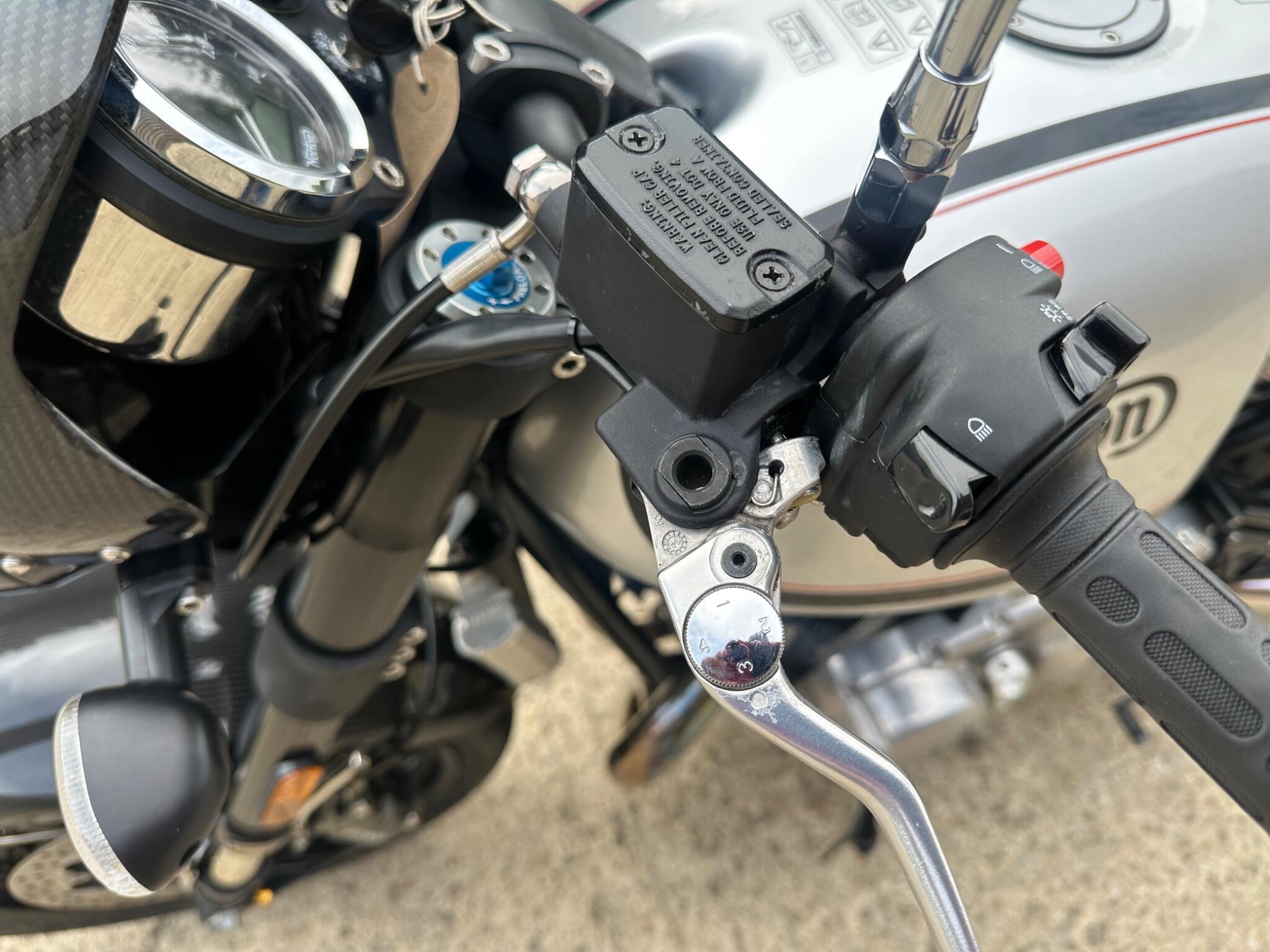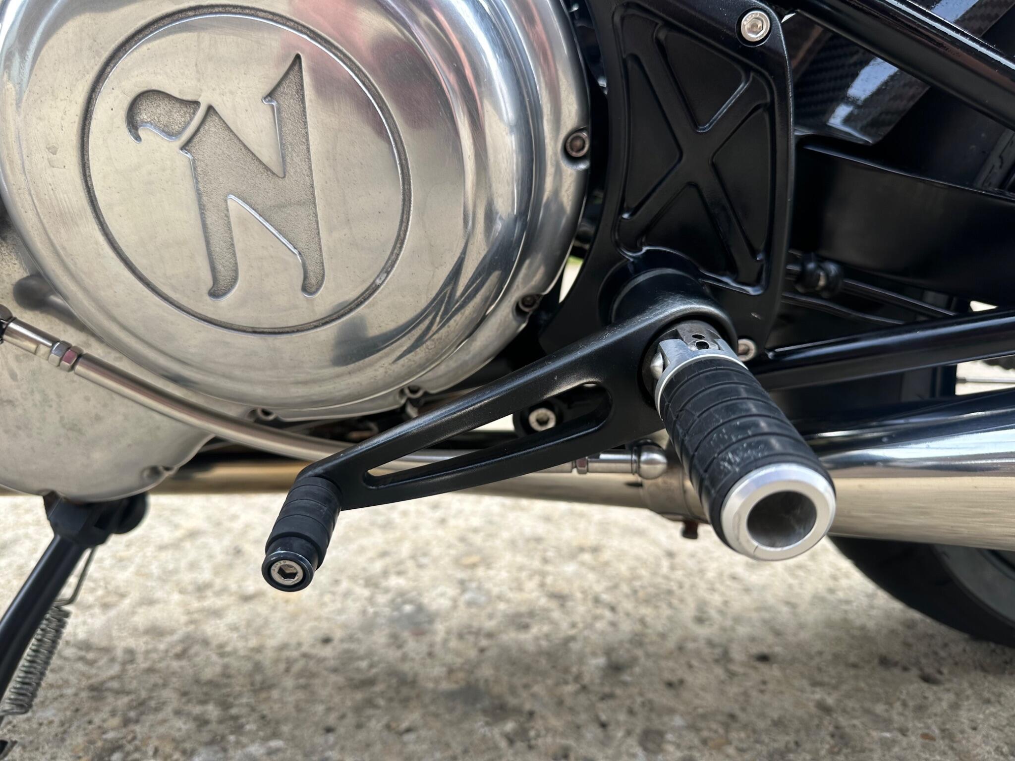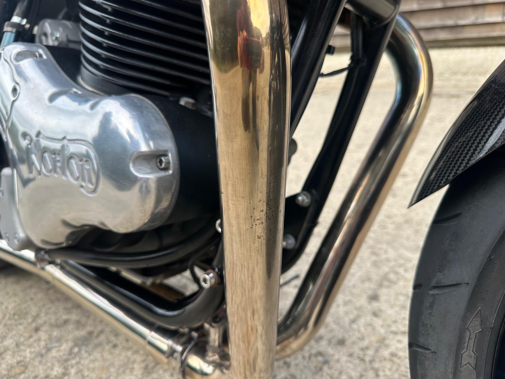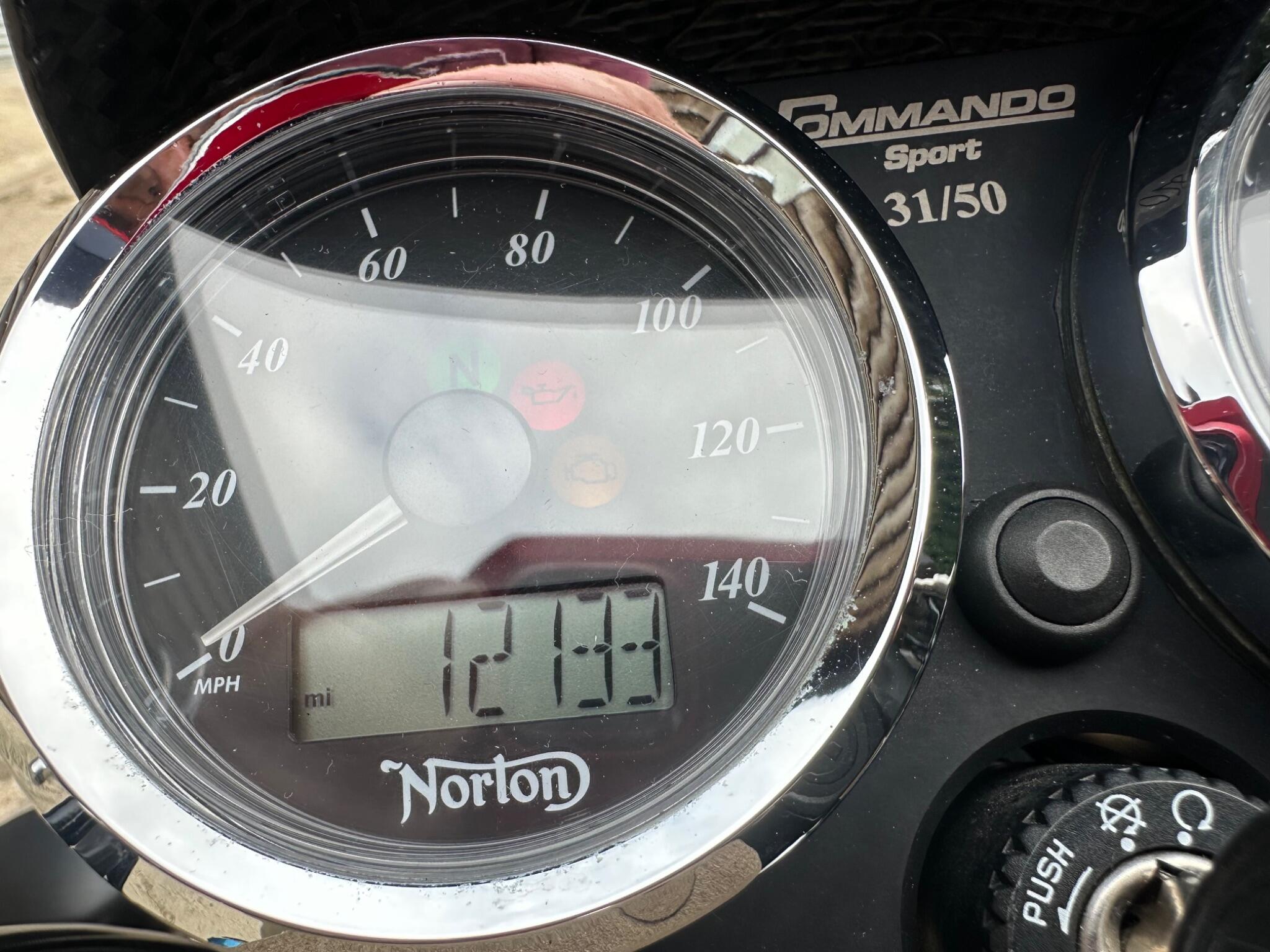Here we have a superb Norton Commando 961 Sport Anniversary. It is number 31/50. This finest of bikes has been very , very well cared for and has actually been ridden! This proves that the bike is a good one as all the low miles ones have not really been confirmed as good! The bike has two keys and the owners and service book which has 6 service stamps. We did the last service in 2023 when we sold it with only 11685 miles! It has the sports pipes fitted and we have the standards along with the rear seat , paddock stand and cover. It pays to buy one of these that has been used and cared for , not just sat about. One that has been used has had all the problems ironed out!