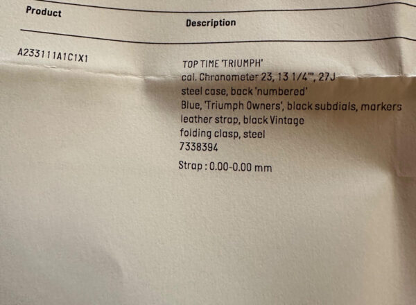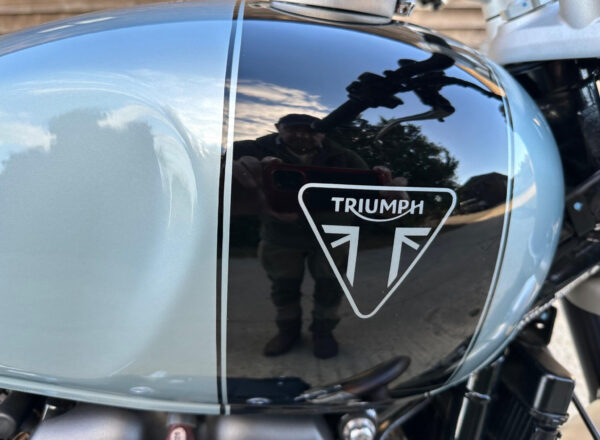 Here we have a “new” Triumph Speed Twin Breitling Limited Edition number 108/270. This bike has been in a private collection and not used. It has done 10 miles and has just been serviced ready for use or to put into another collection. It comes with all its original books and keys , the Triumph book , its certificate of authenticity and of course the specially ordered Breitling watch which is numbered the same as the bike! I do not think there is another for sale and this actually represents a saving over what it was in total back in 2022!